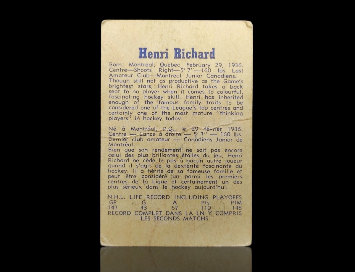 1957-58 PARKHURST CARD ROOKIE CARD HENRI RICHARD