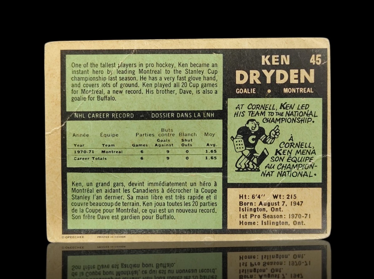 #45 vintage o-pee-chee Ken Dryden rookie hockey card
