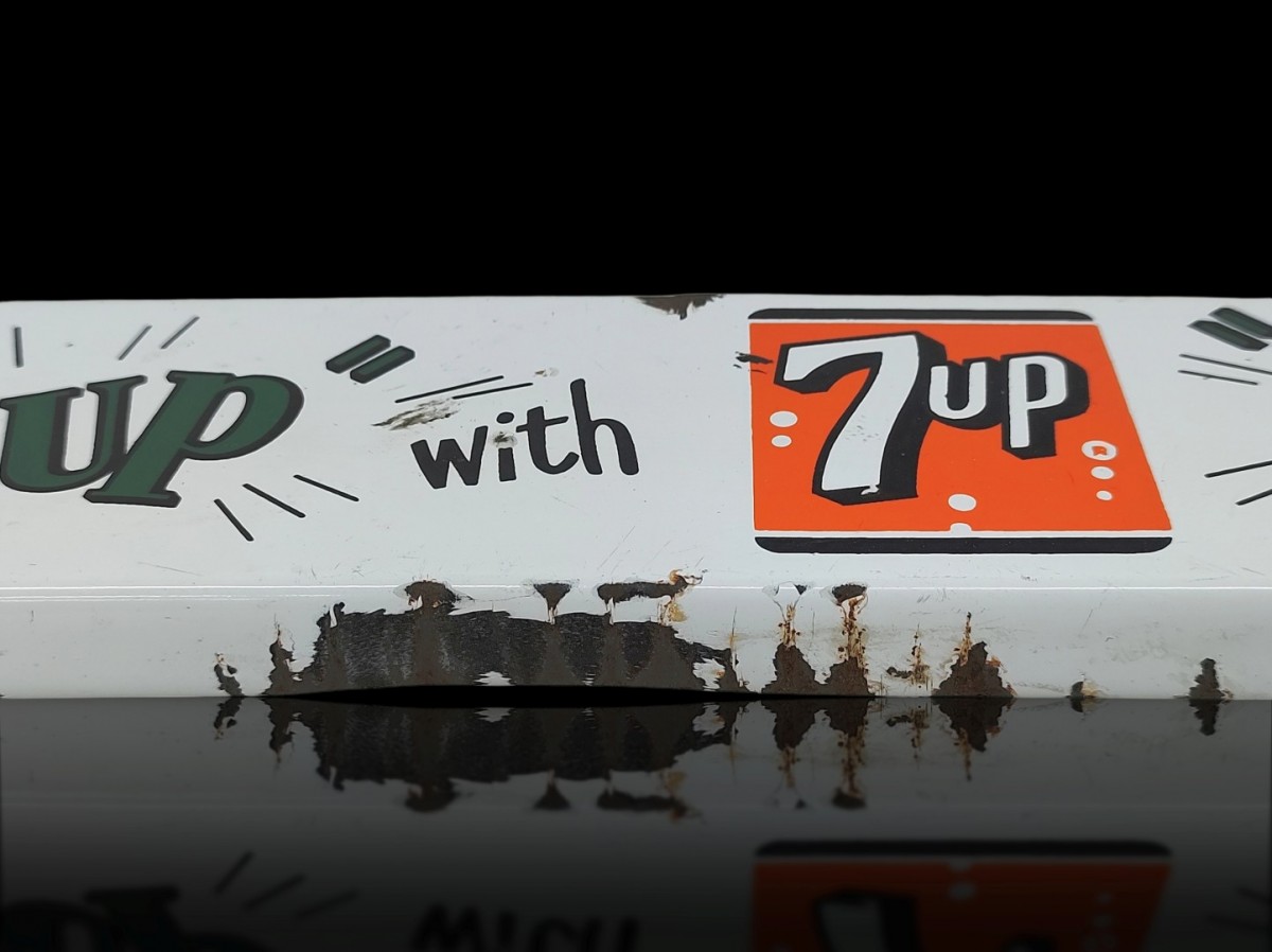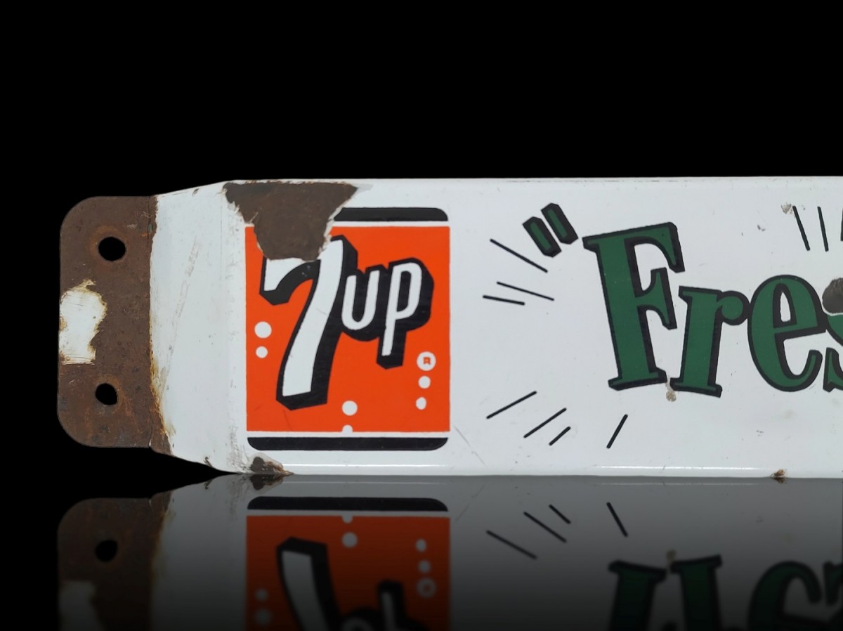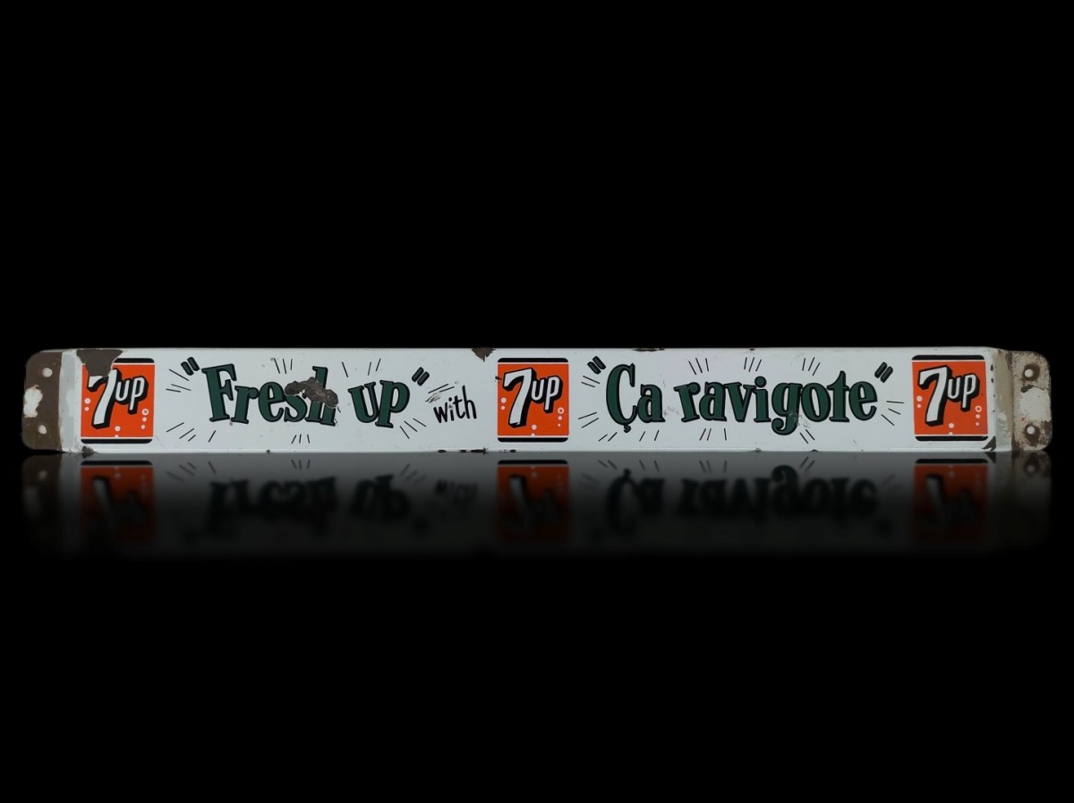 Bilingual enamel 7UP sign “Fresh up / Ça ravigote” push bar