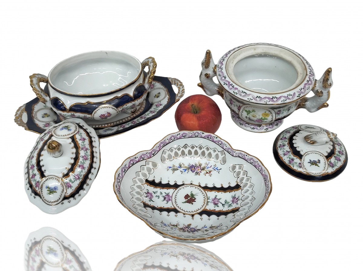 Fine decorative porcelain with gold accents — antique dishware, limoge