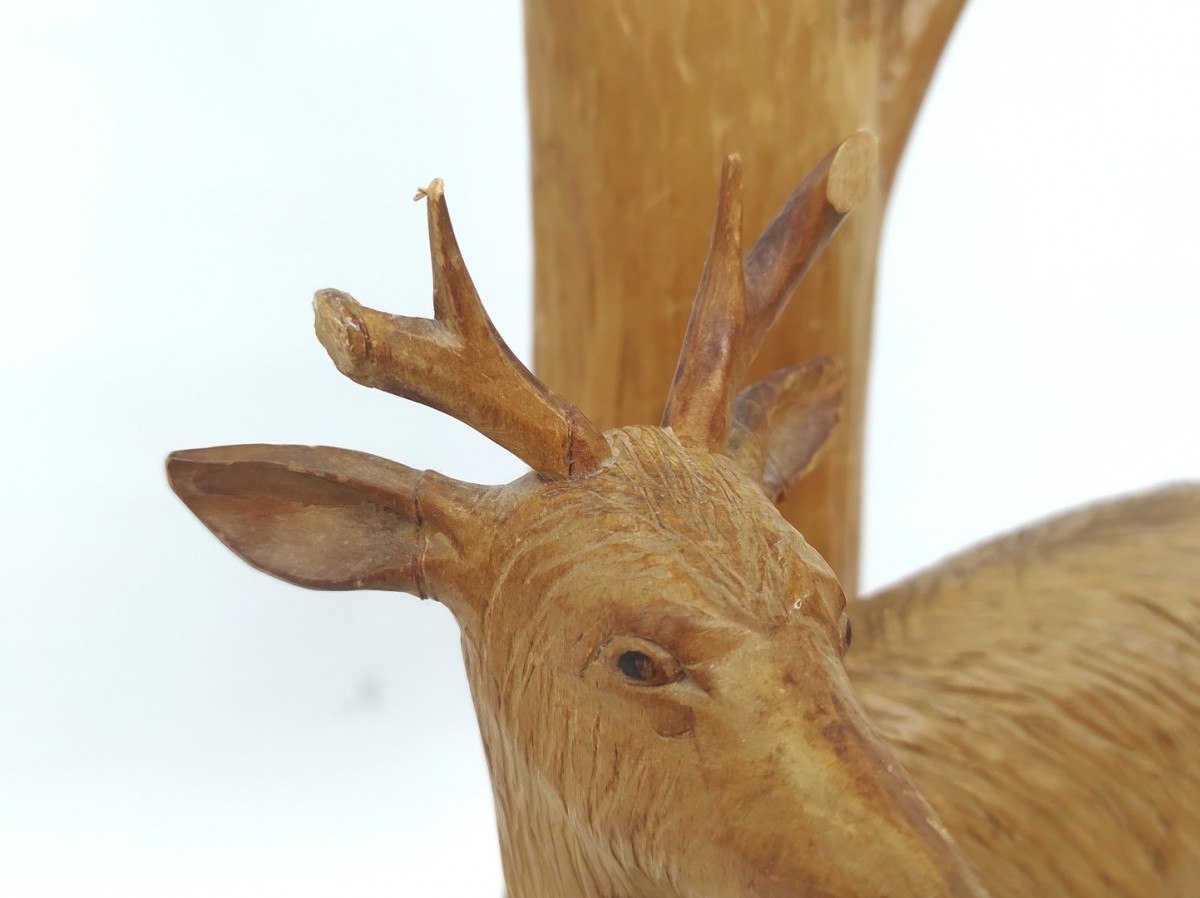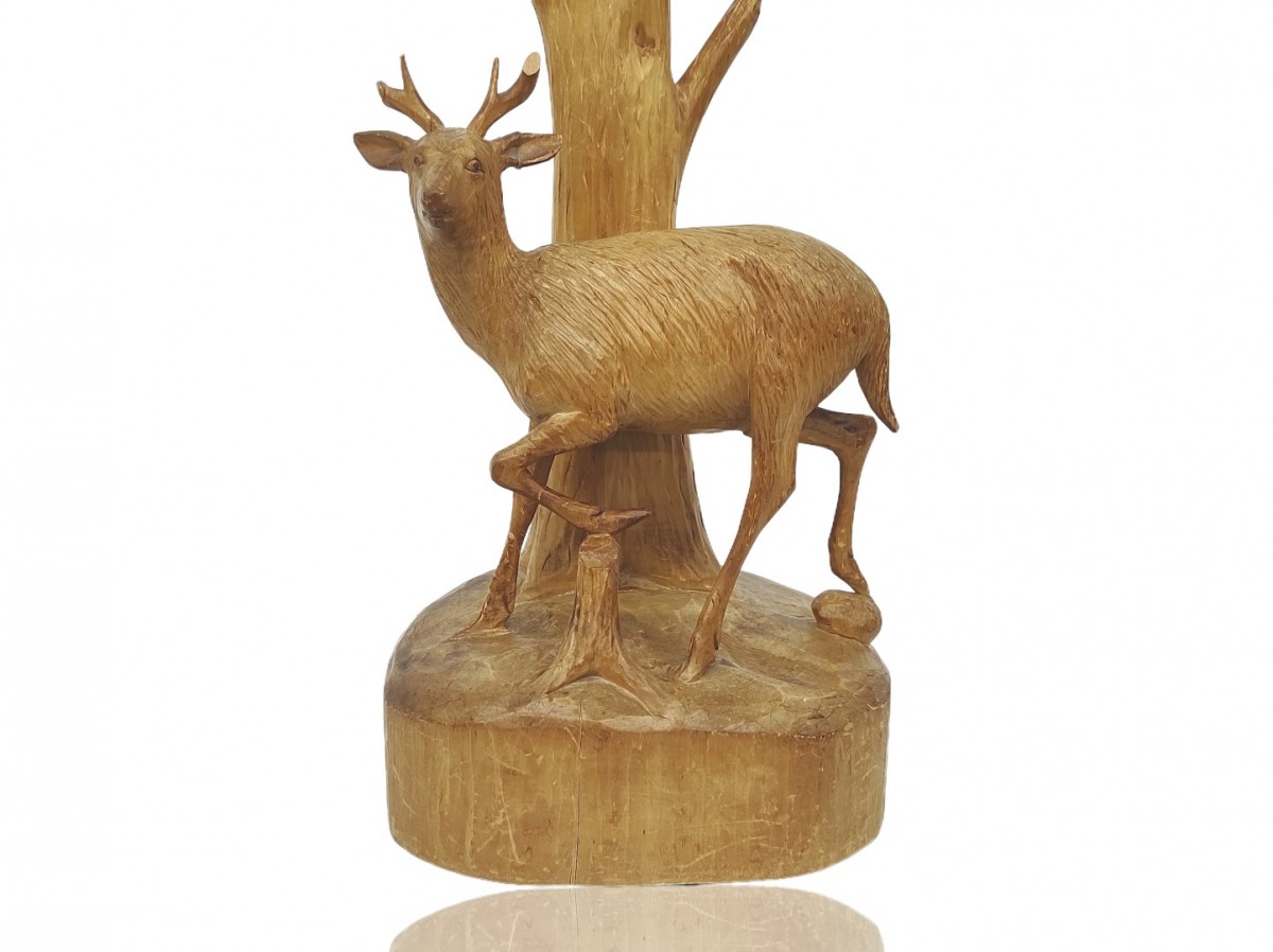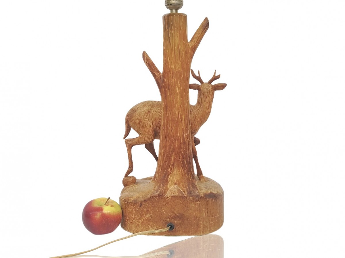 Folk art carved lamp signed André Dubé