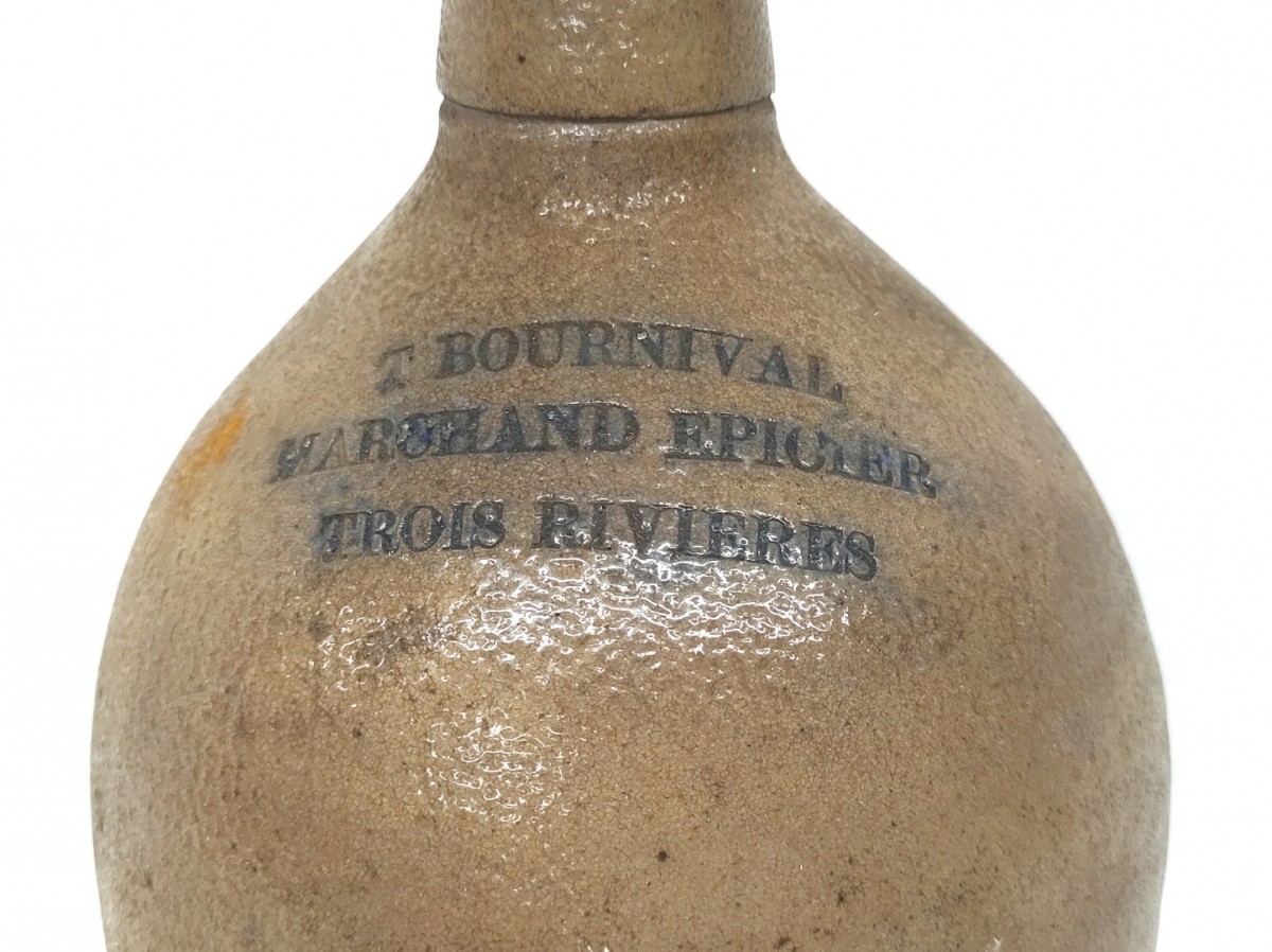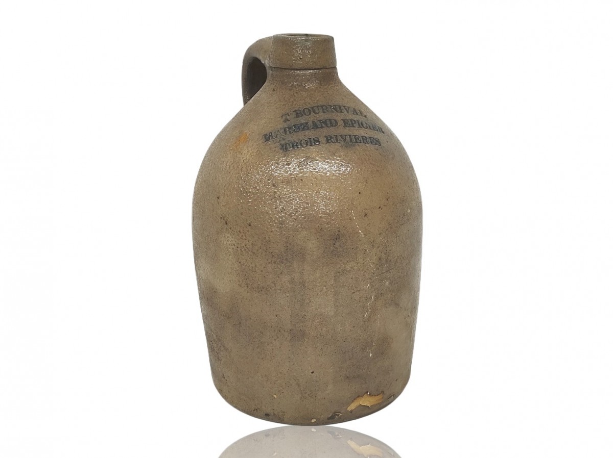 Merchant stoneware jug signed Belisle from Montreal