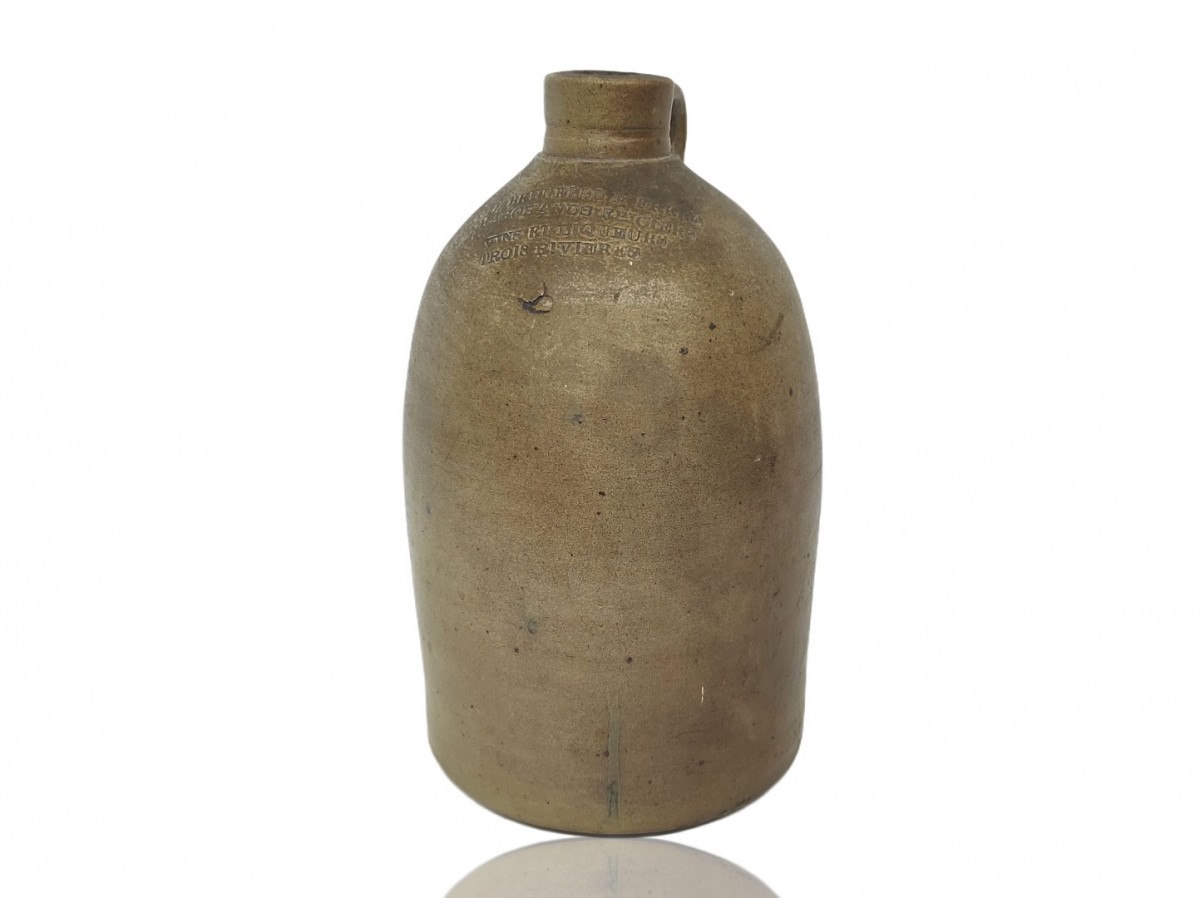 Vintage decorative stoneware merchant jug from Joliette (half gallon sold)