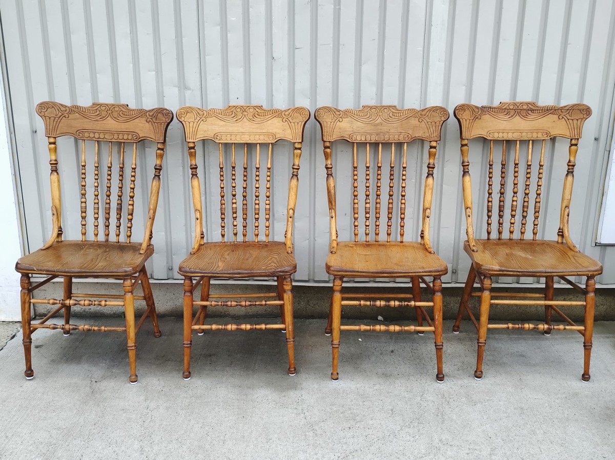 Set of 4 antique press-back chairs