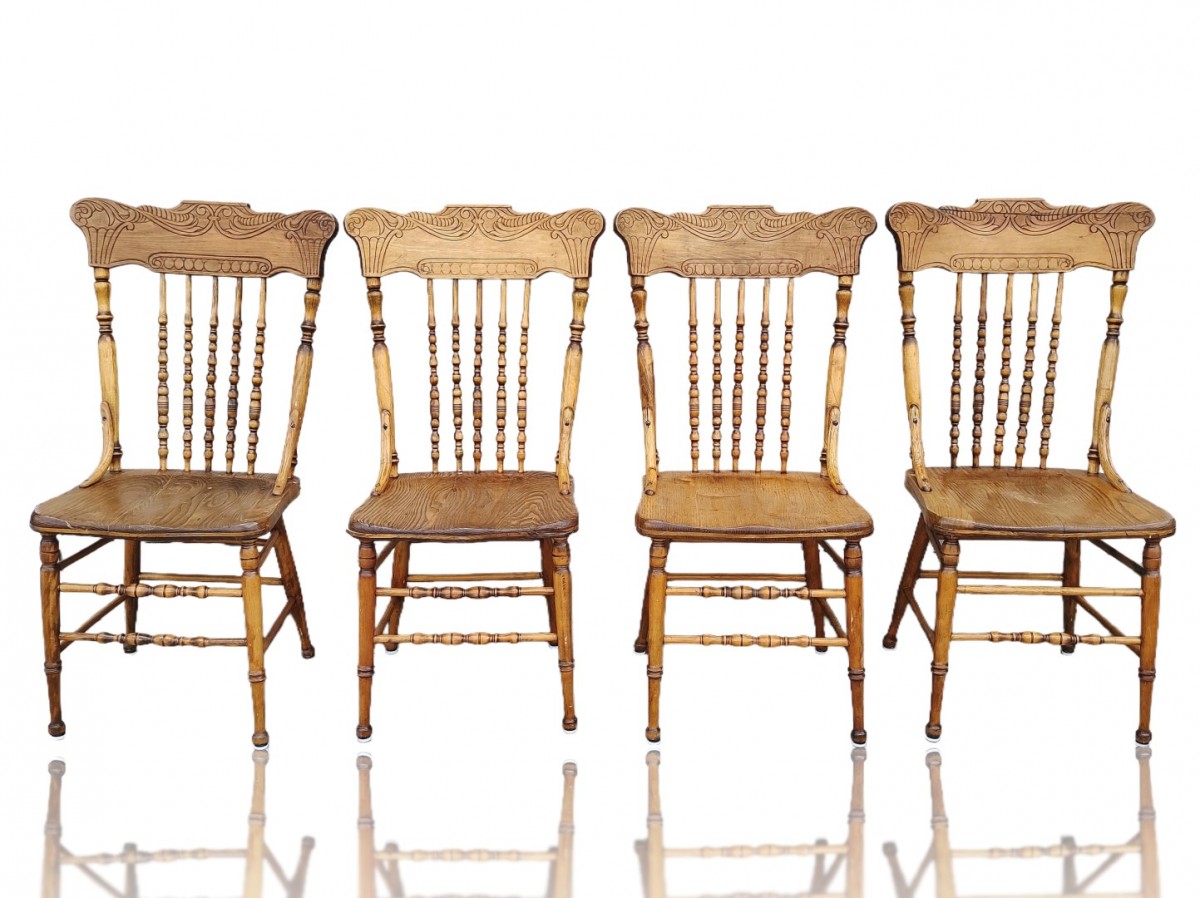 Set of 4 antique press-back chairs  - 1Set of 4 antique press-back chairs  - 2Set of 4 antique press-back chairs  - 3Set of 4 antique press-back chairs  - 4