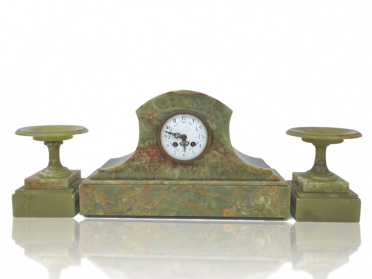 Vintage onyx mantel clock and candlesticks (see other picture for condition)
