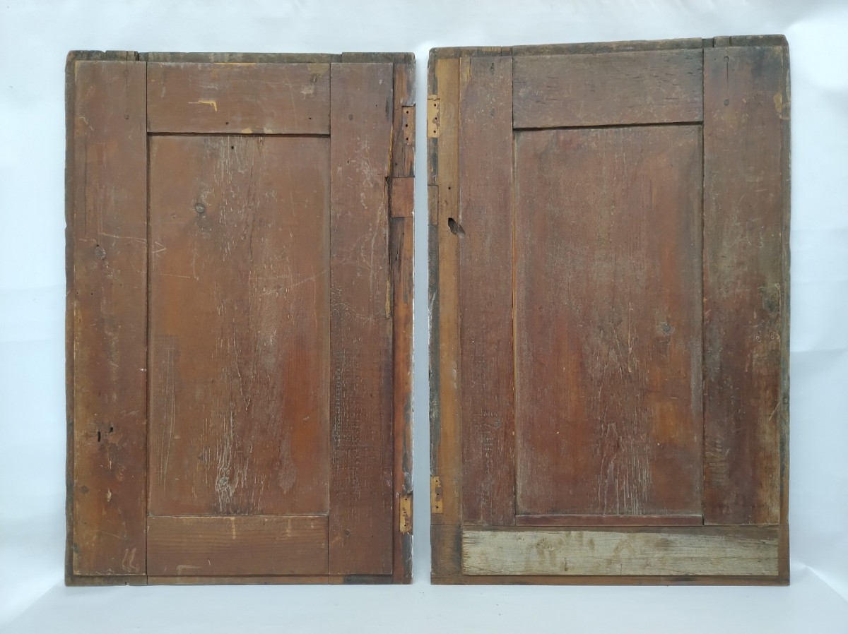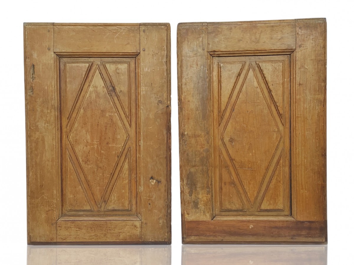 Pair of losange armoire doors, long door has been cuting in the past