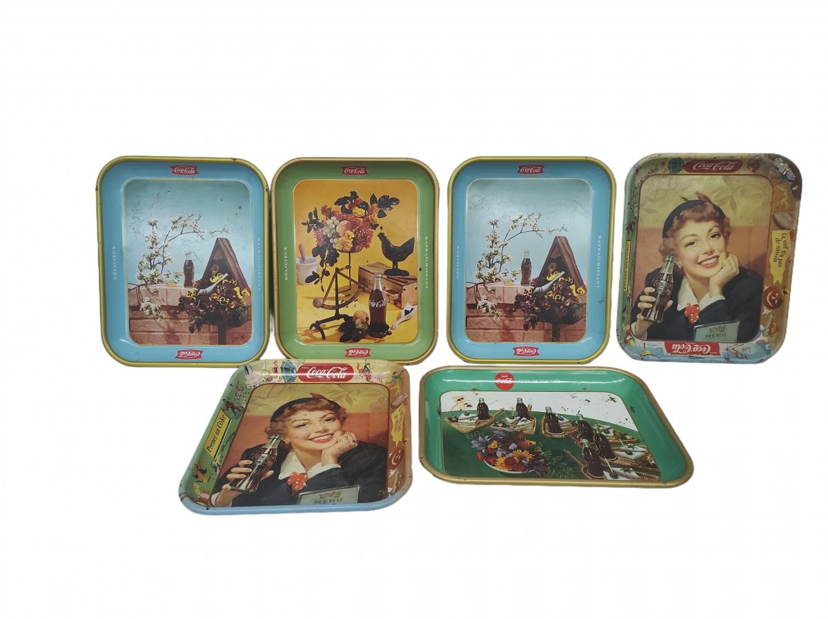 Set of colorful vintage Coca-Cola trays
