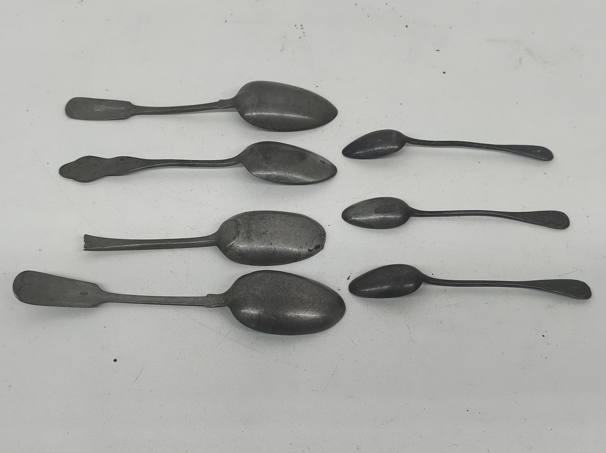 Set of antique pewter spoons