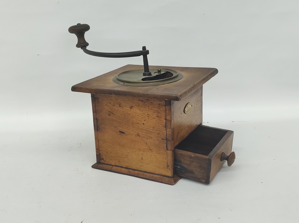 Antique wooden coffee grinder