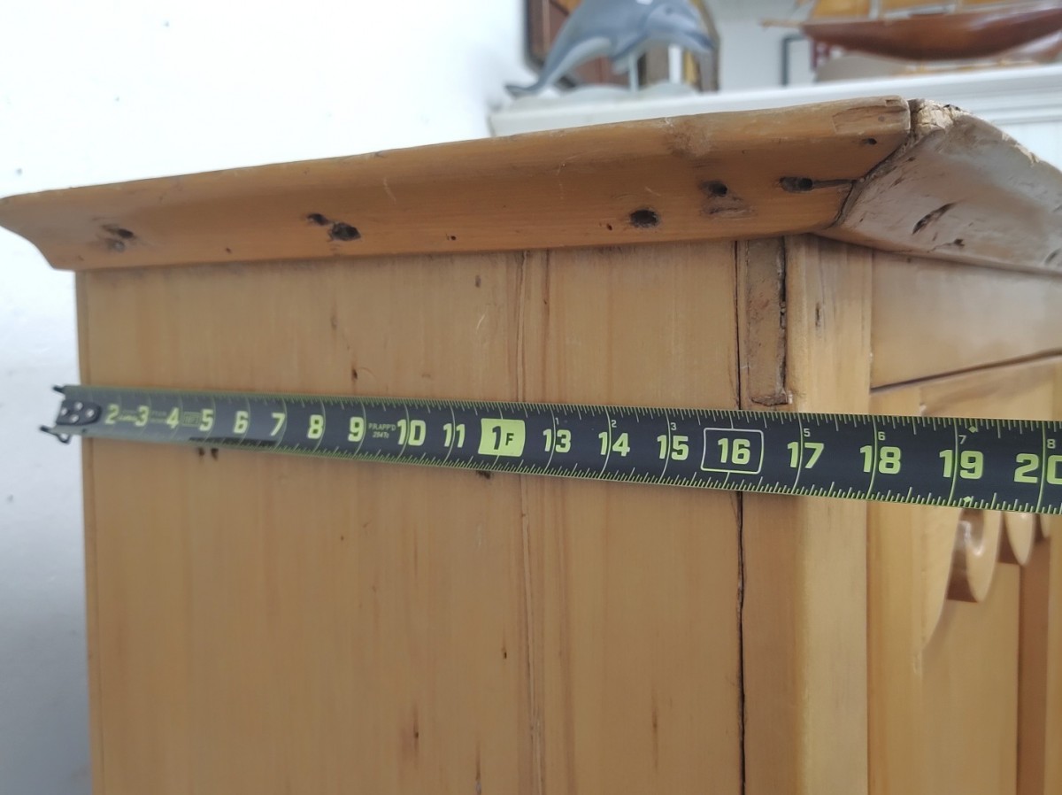 Jolie bibliothèque en pin, double caissons sur les côtés, recolorée dans le passé, bâti d'armoire