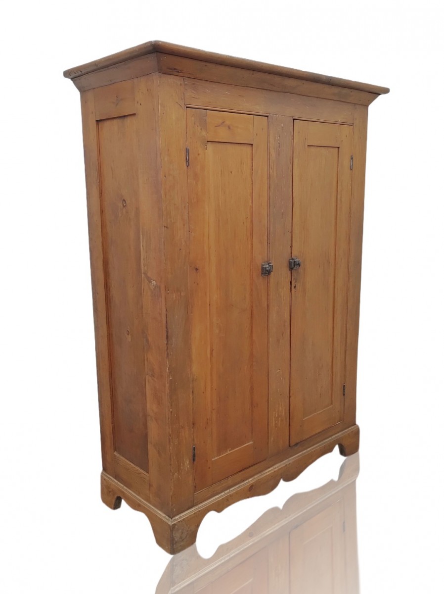 Jolie bibliothèque en pin, double caissons sur les côtés, recolorée dans le passé, bâti d'armoire