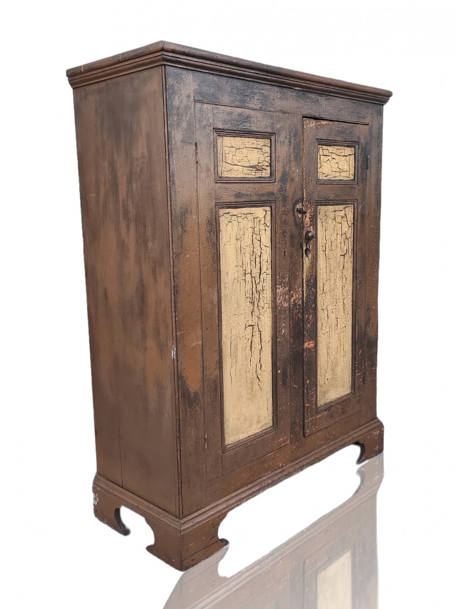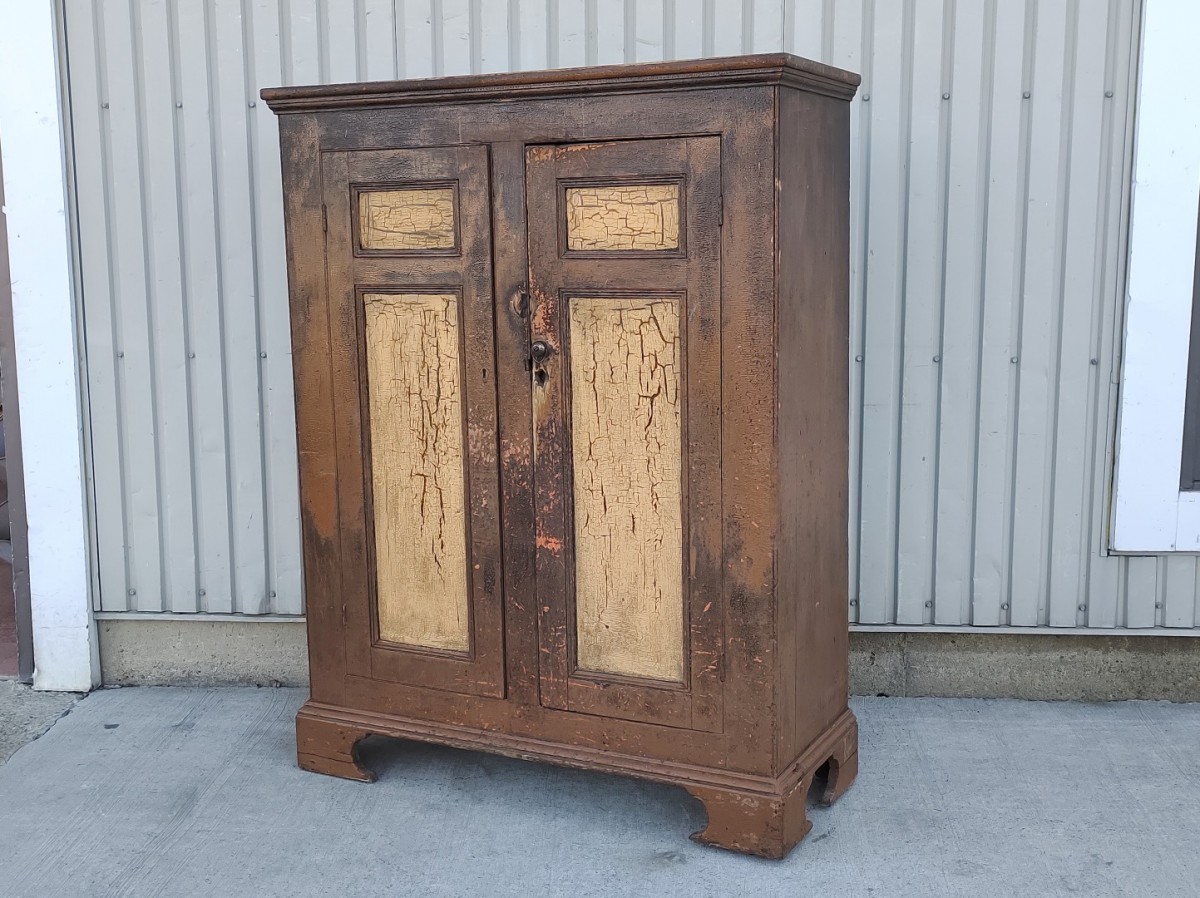Armoire Québécoise antique en pin, clous forgés, très beau format, dos à caisson