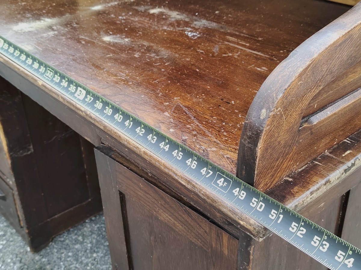 Pupitre antique en pin, piétement à traverses, bureau