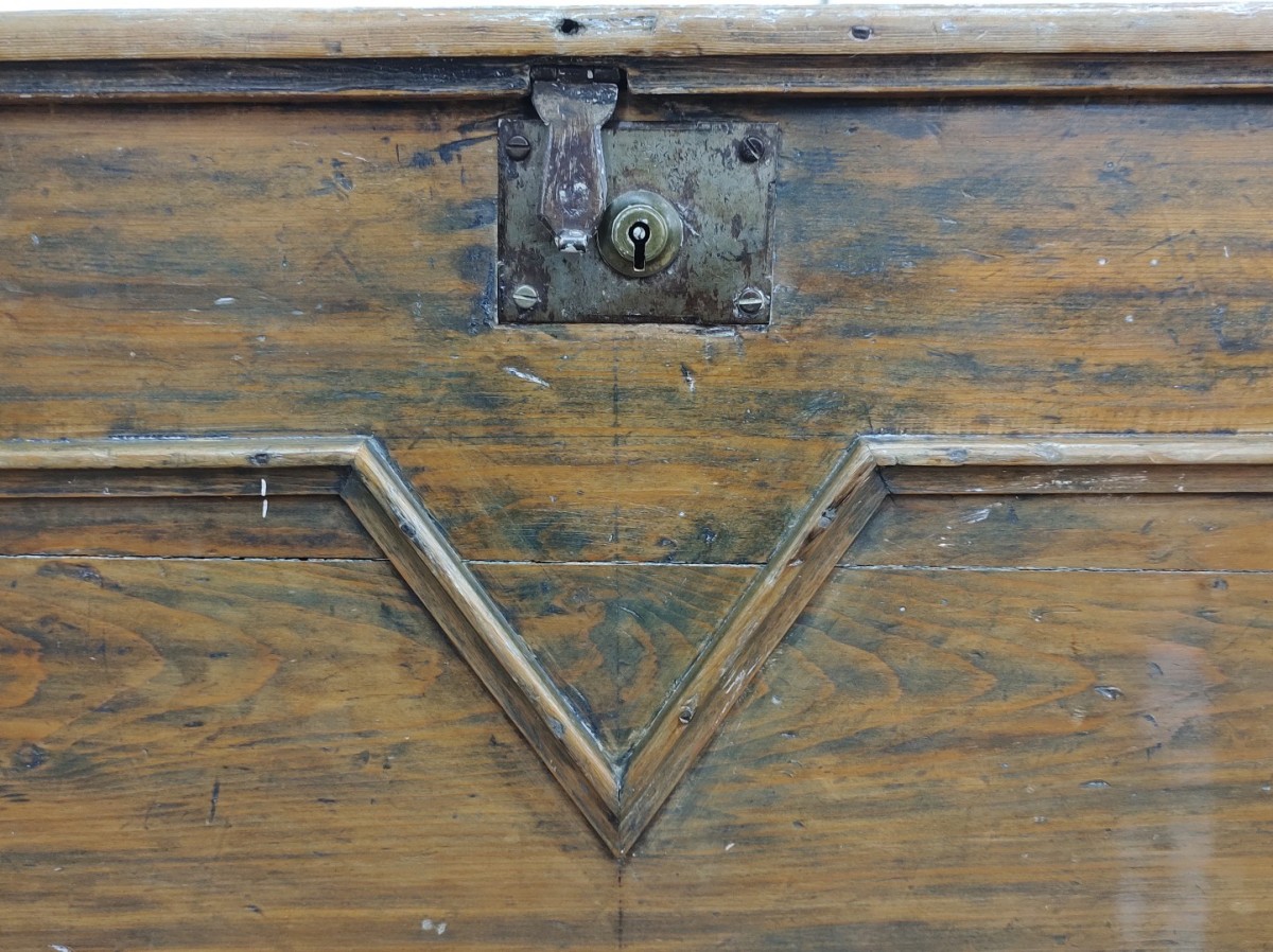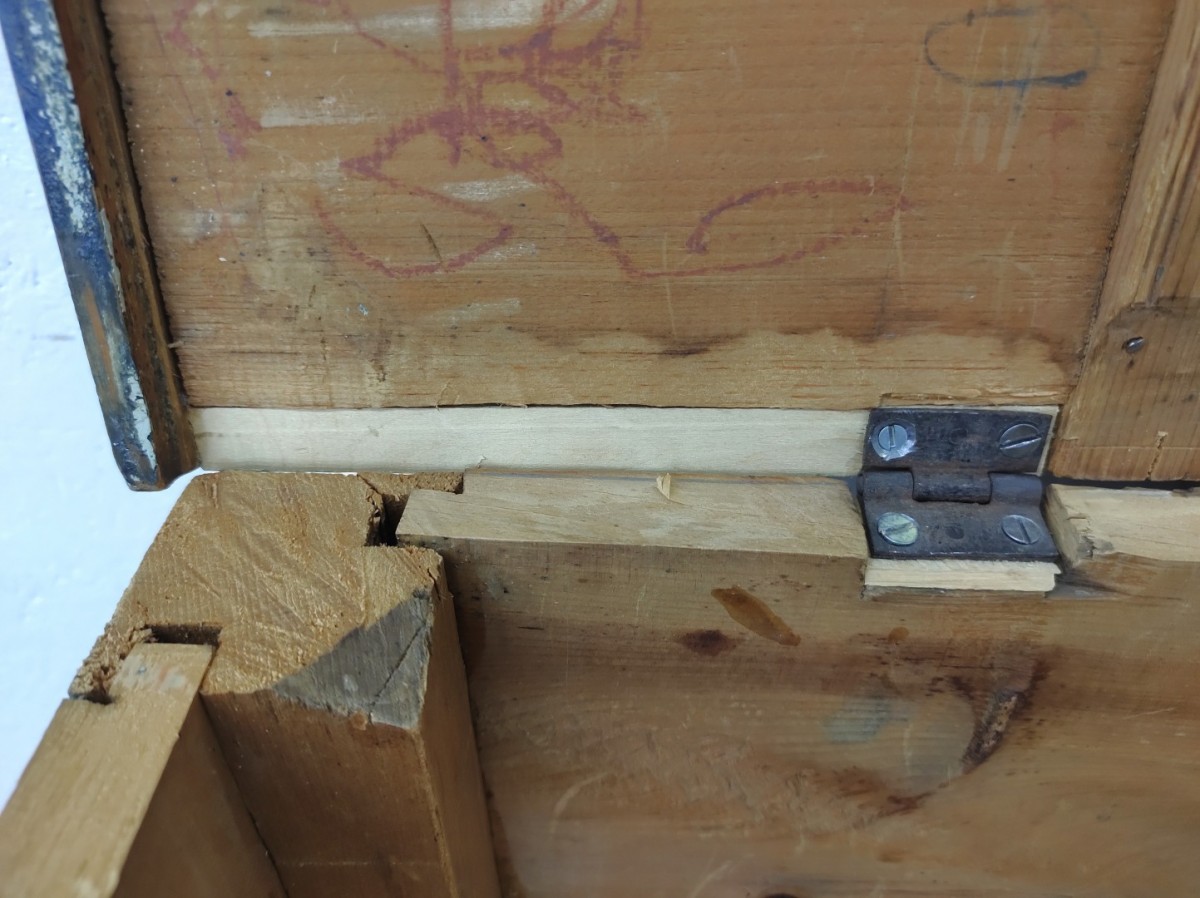 Coffre de bateau, couvercle changé dans le passé