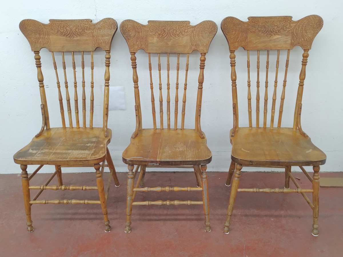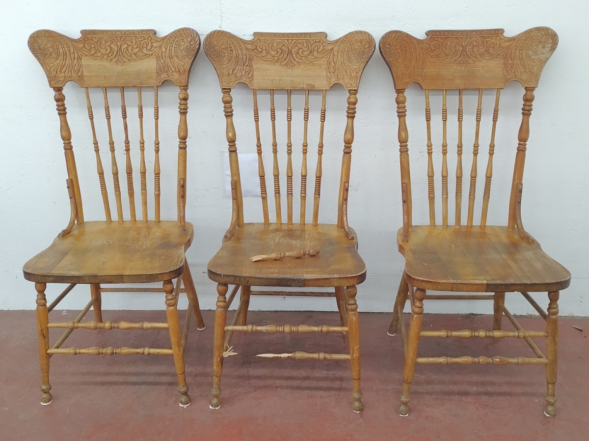Chaises antique en chêne avec dossiers sculptés (chaise de droite VENDUE)