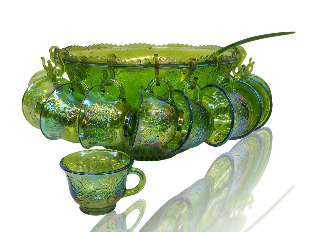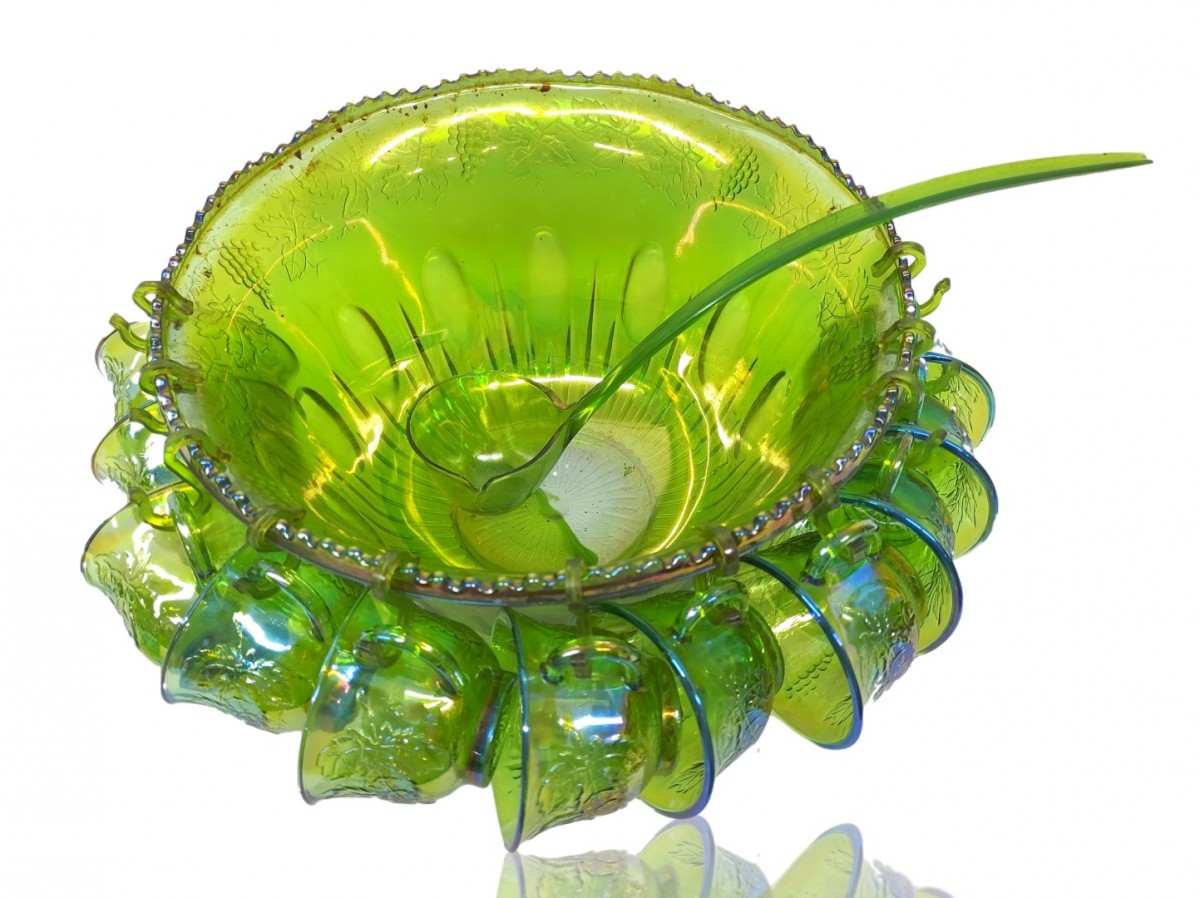 Grand bol à cocktails avec tasses, punch bowl, verre flash carnaval, vaisselle