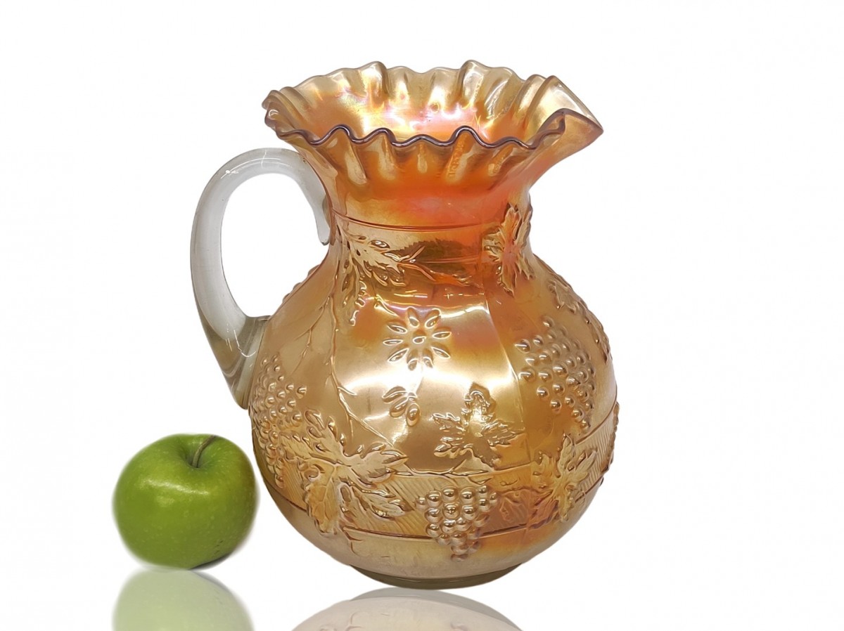 Joli pichet en verre carnaval ''marigold'', carafe, vaisselle de collection