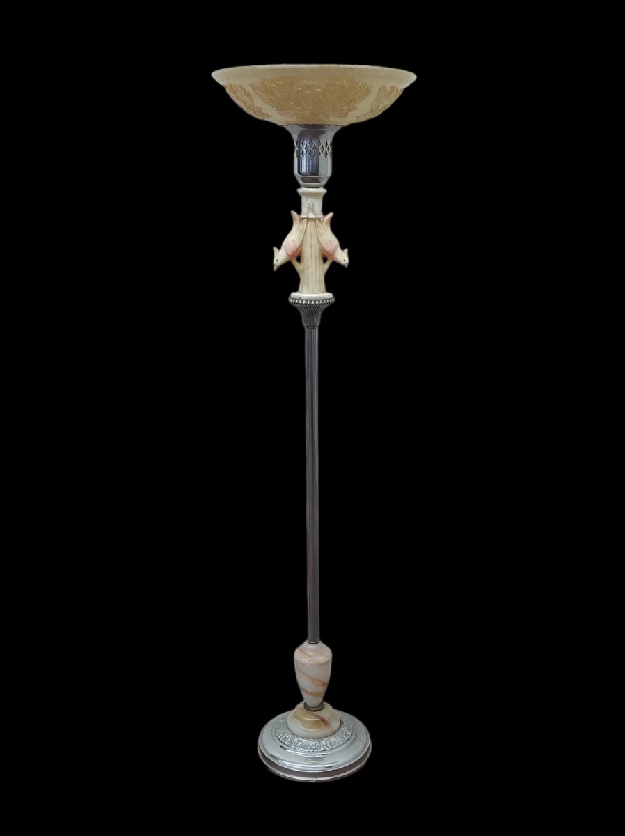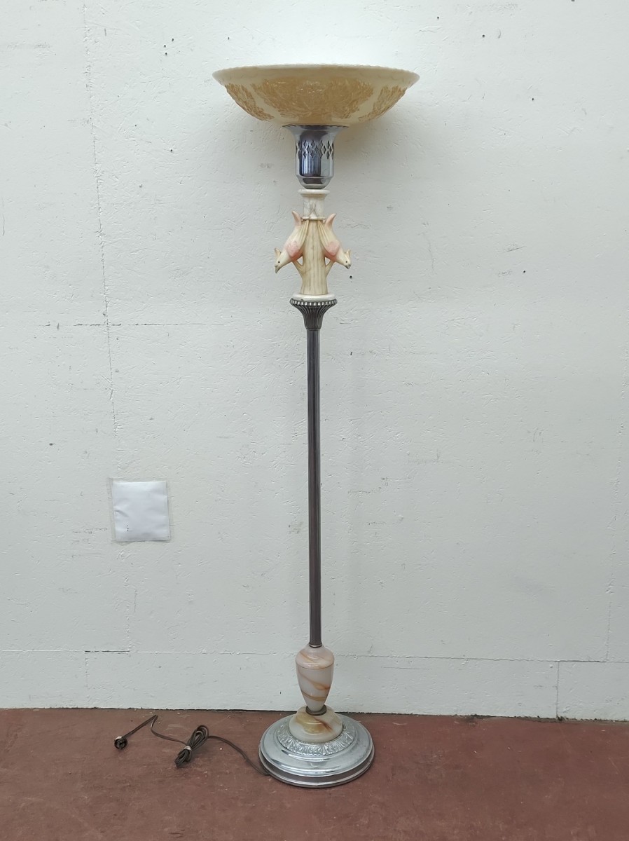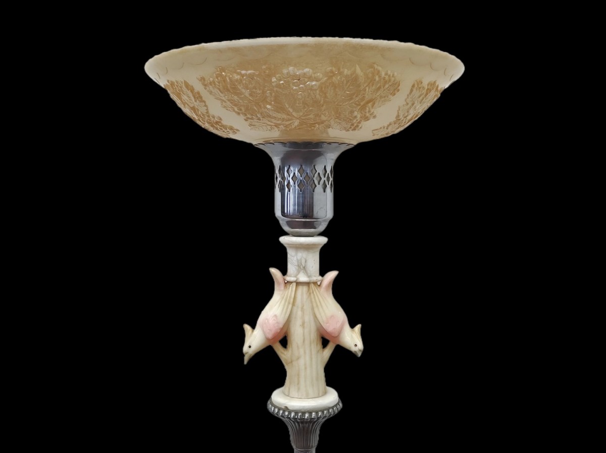 Jolie lampe torchère décorée d'oiseaux en marbre, voir autres photos pour condition