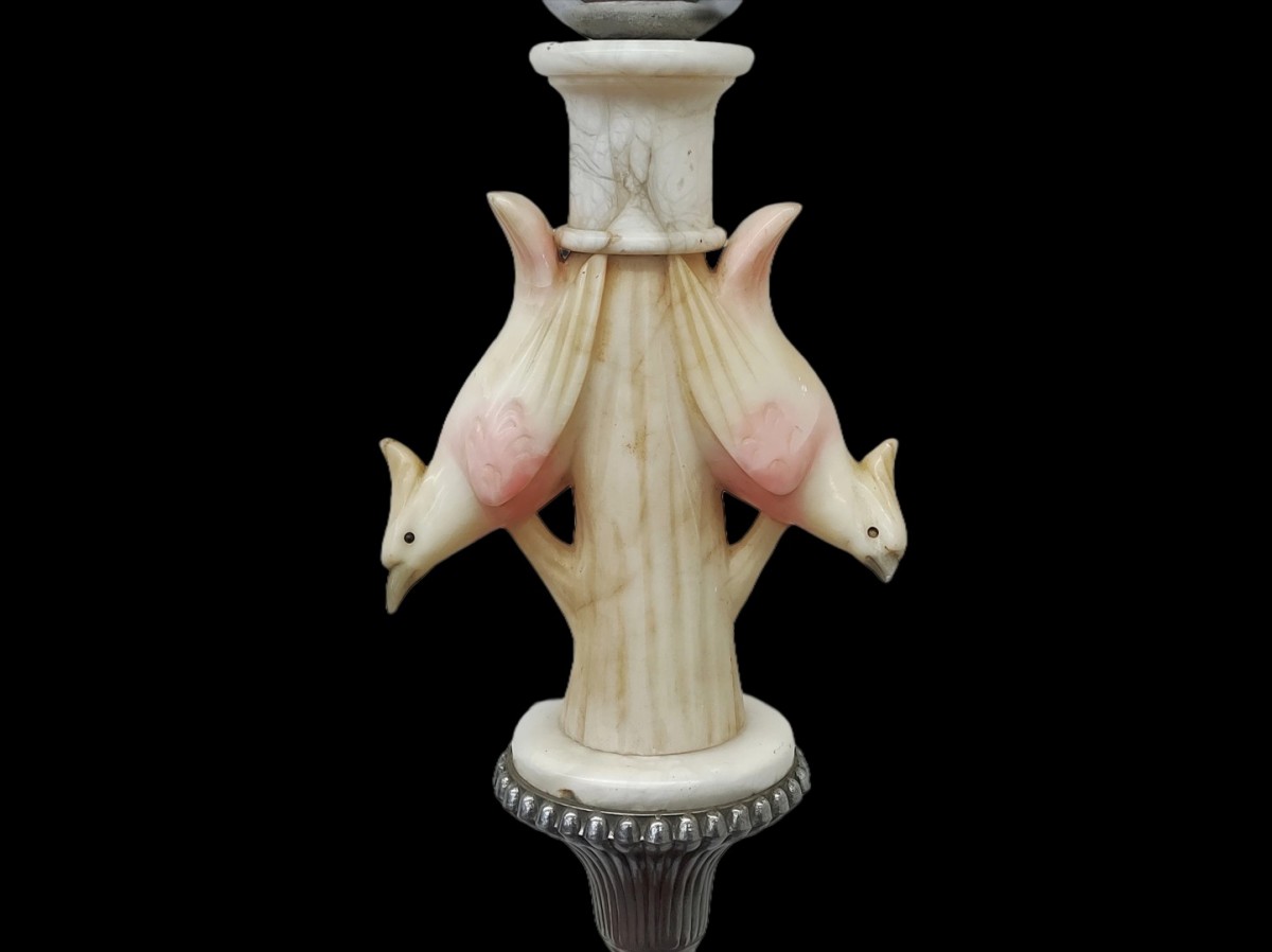 Accueil-Antiquité-Jolie lampe torchère décorée d'oiseaux en marbre, voir autres photos pour condition