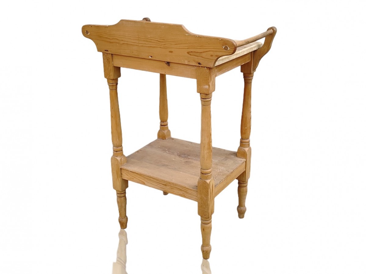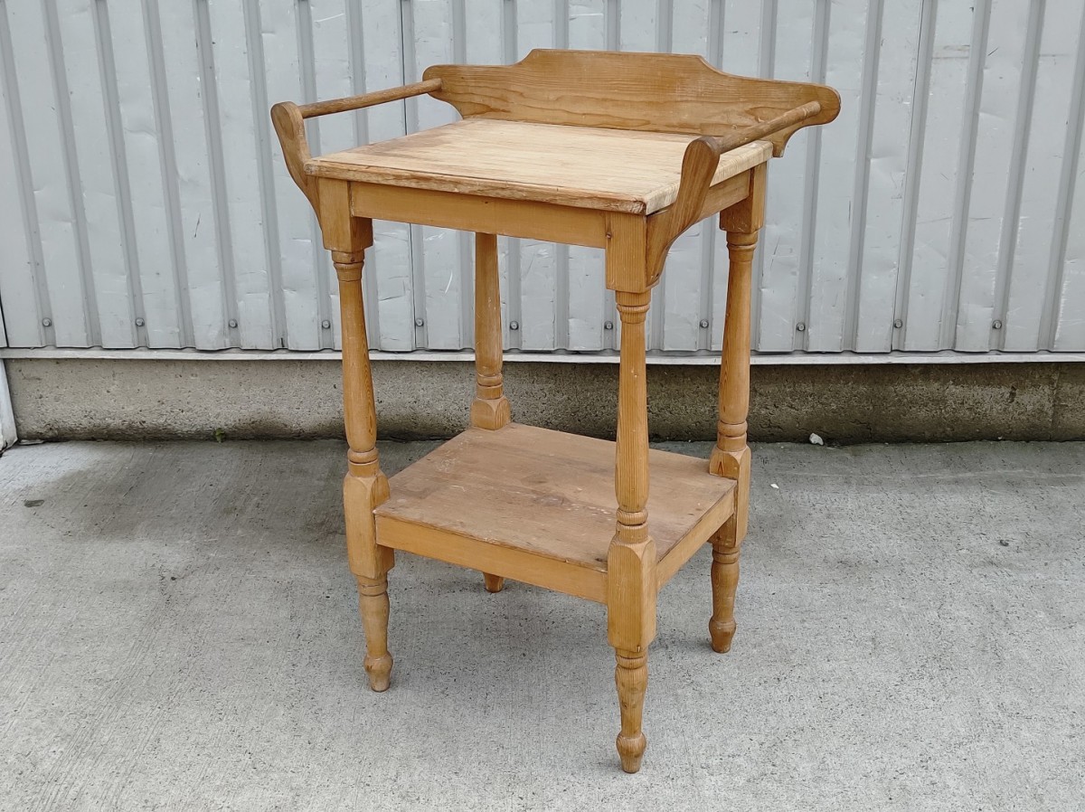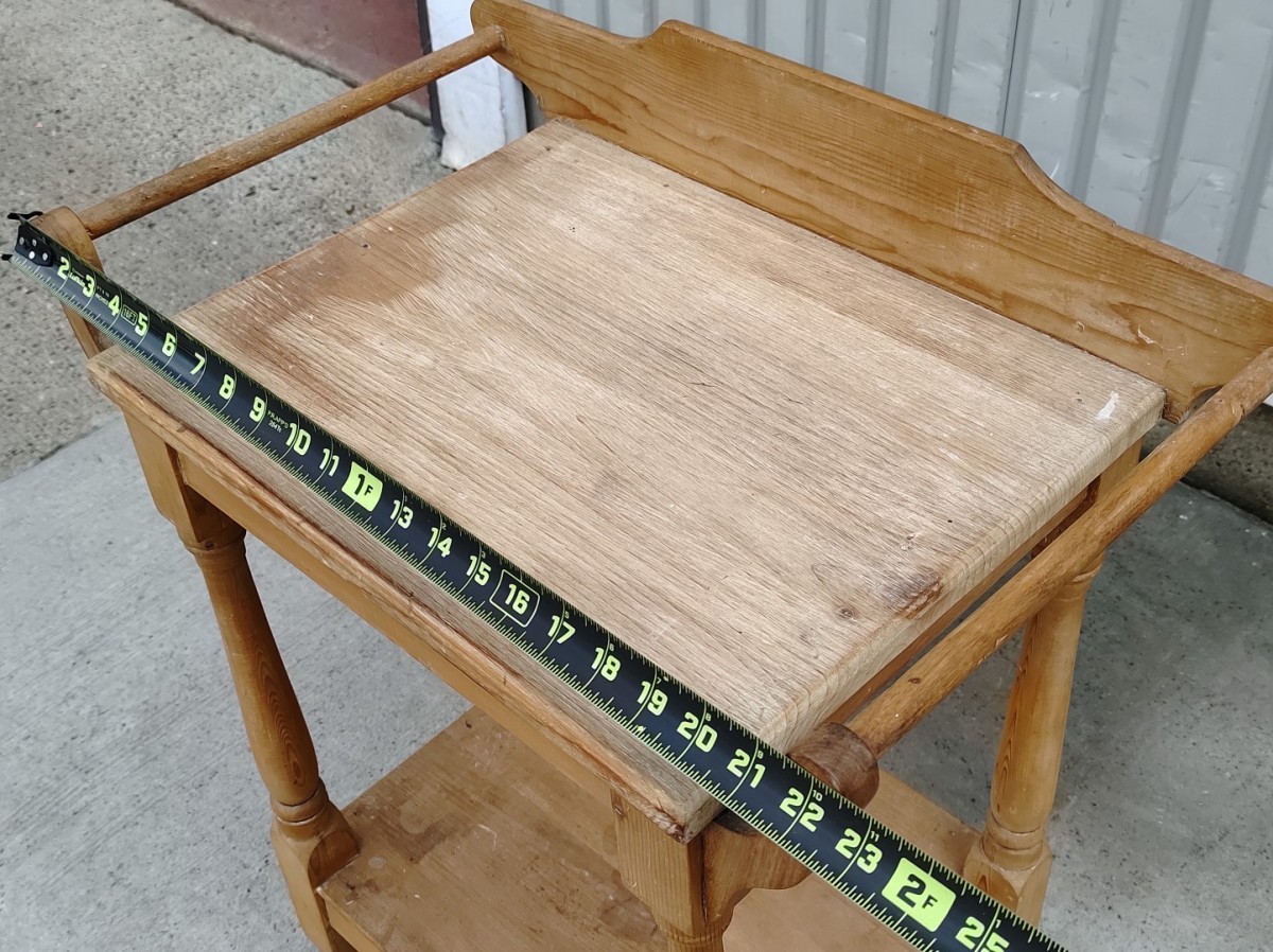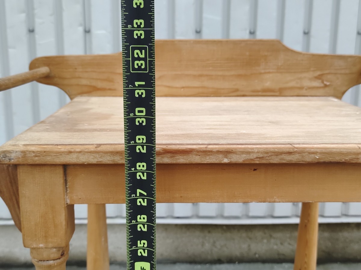 Table à piétement à entretoise en H, couleur d'origine, tiroir refait dans le passé