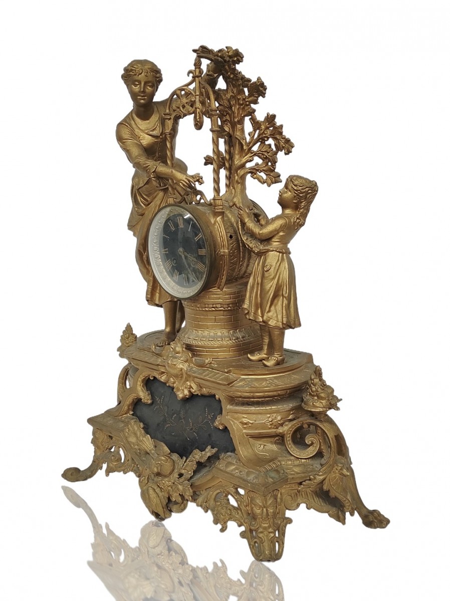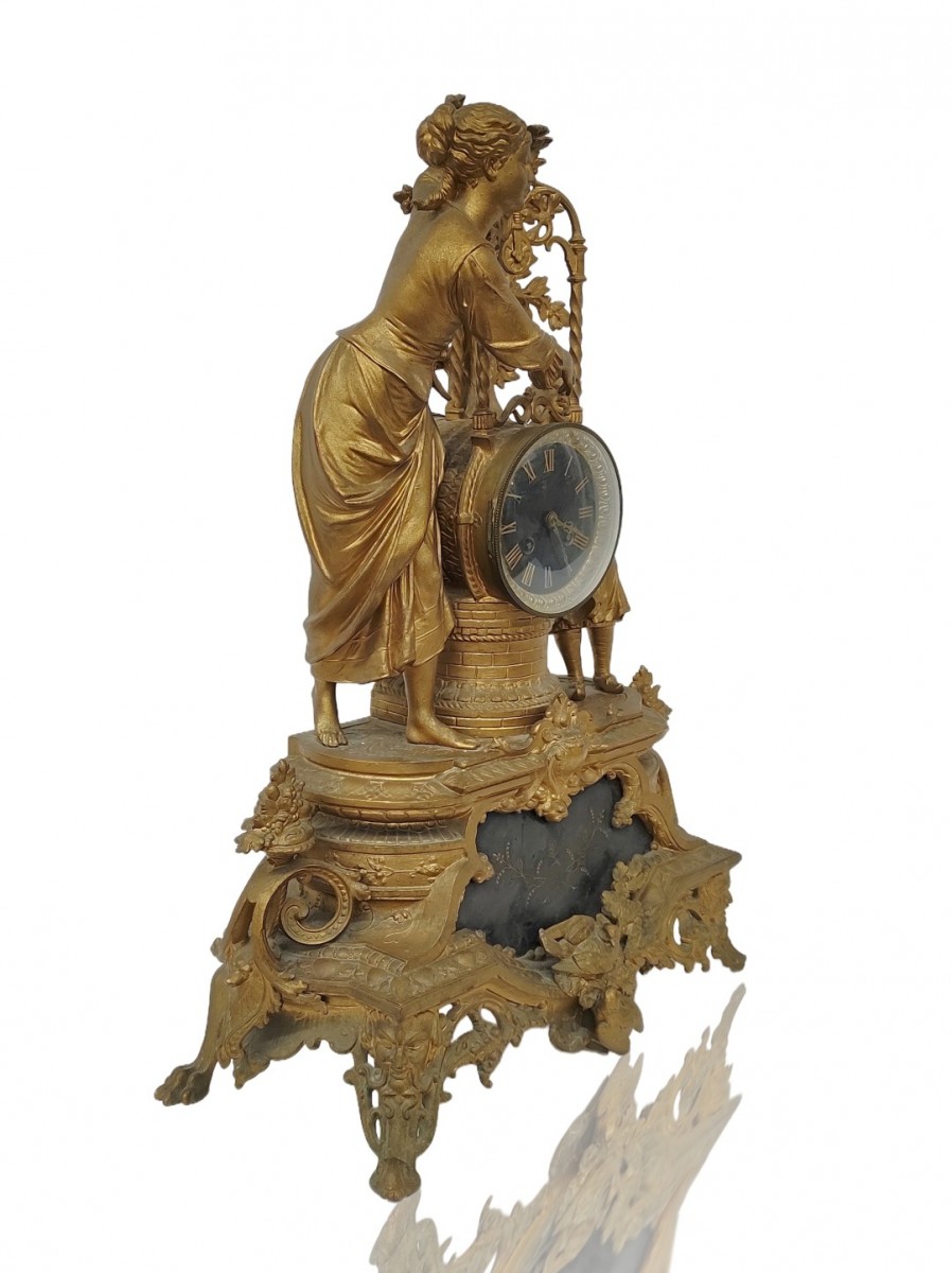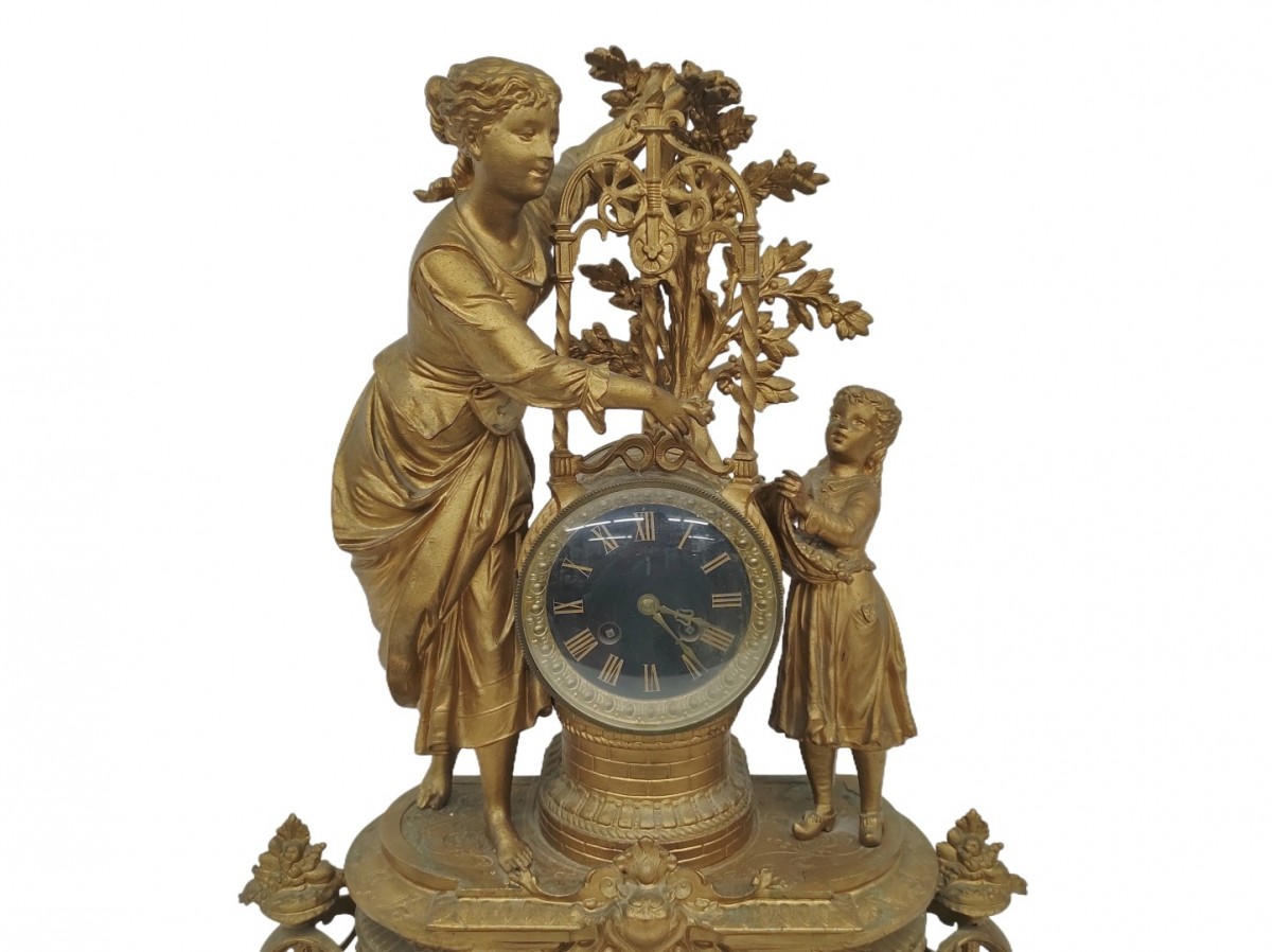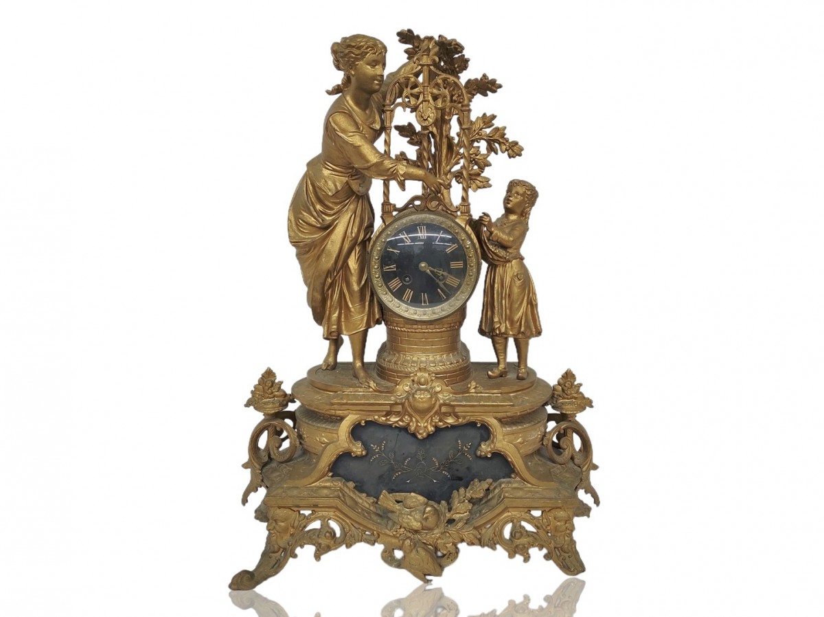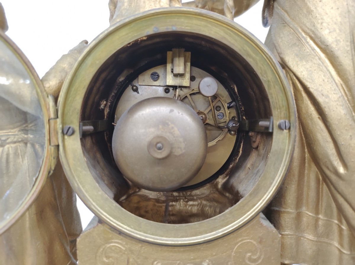 Magnifique horloge Française en métal doré, (fonctionnelle), voir autres photos pour condition