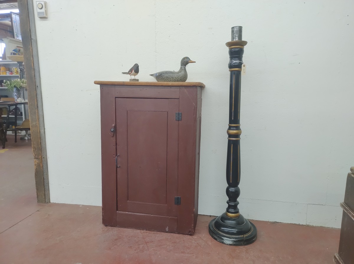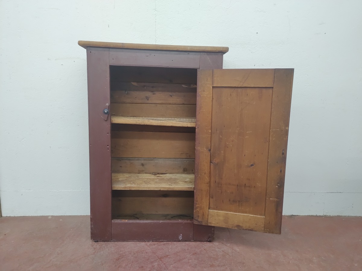 Jolie armoire antique en pin, portes à panneaux creux, recolorée dans le passé