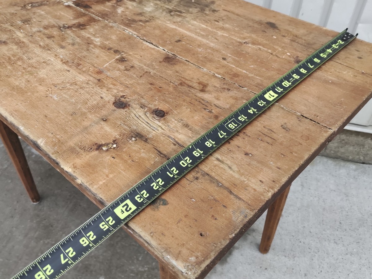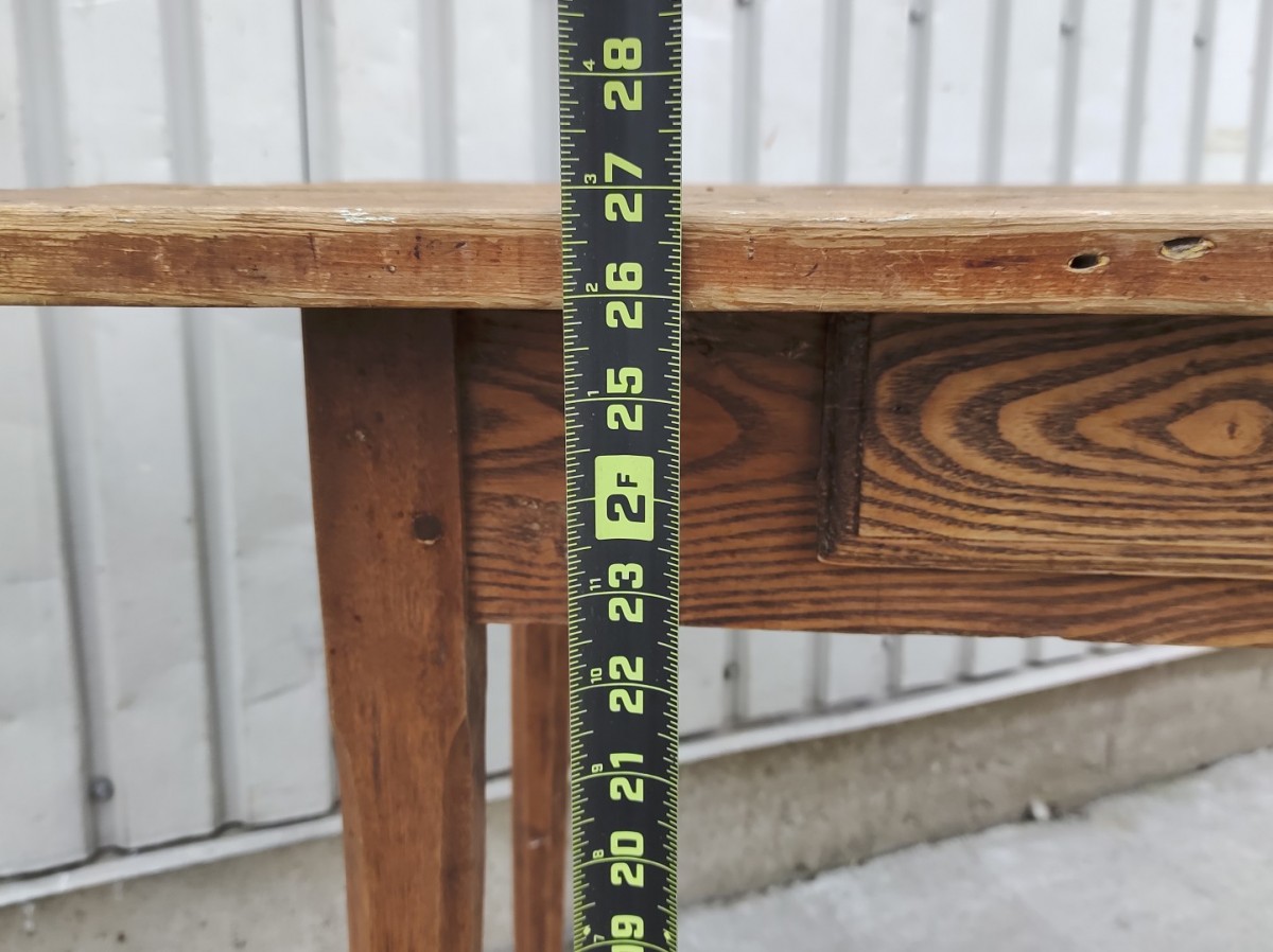 Grande table de salle à manger, piétement tourné et à traverse, 7 pieds de long