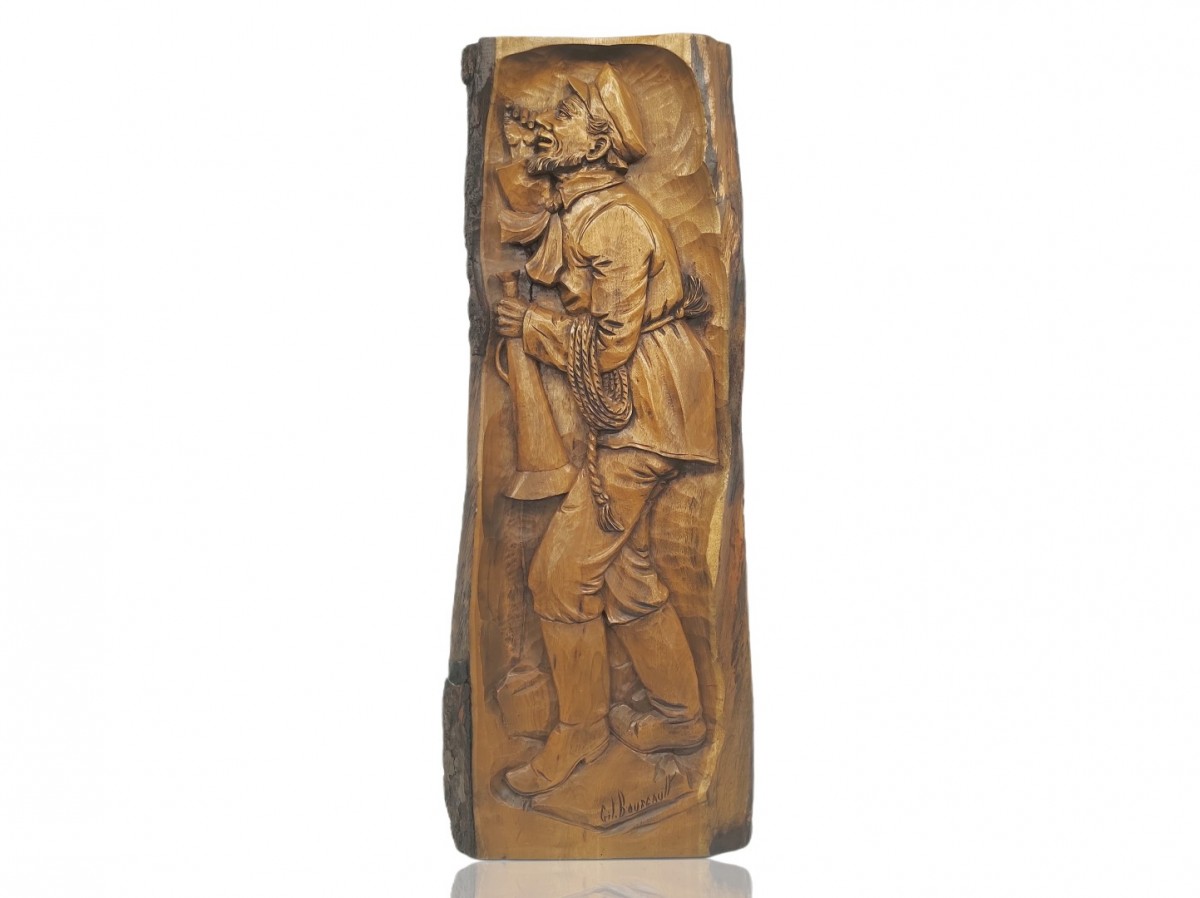 Paire d’échassiers sculptés en bois, oiseaux de rivage, sculptures art populaire
