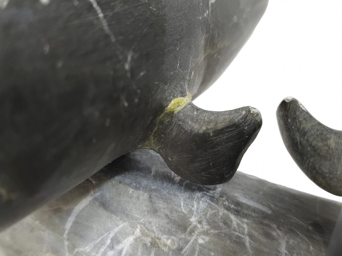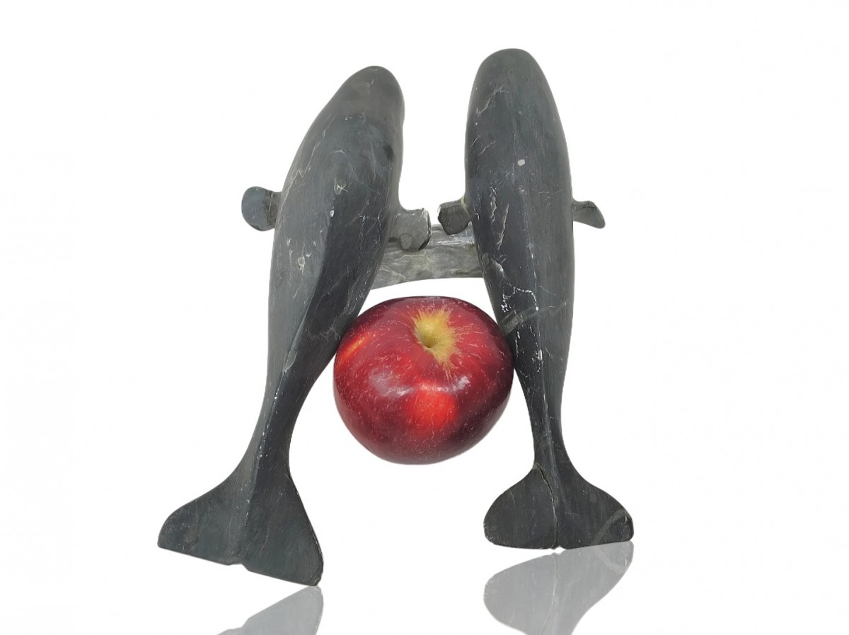 Sculpture inuit en pierre, duo de bélugas (voir autres photos pour condition)