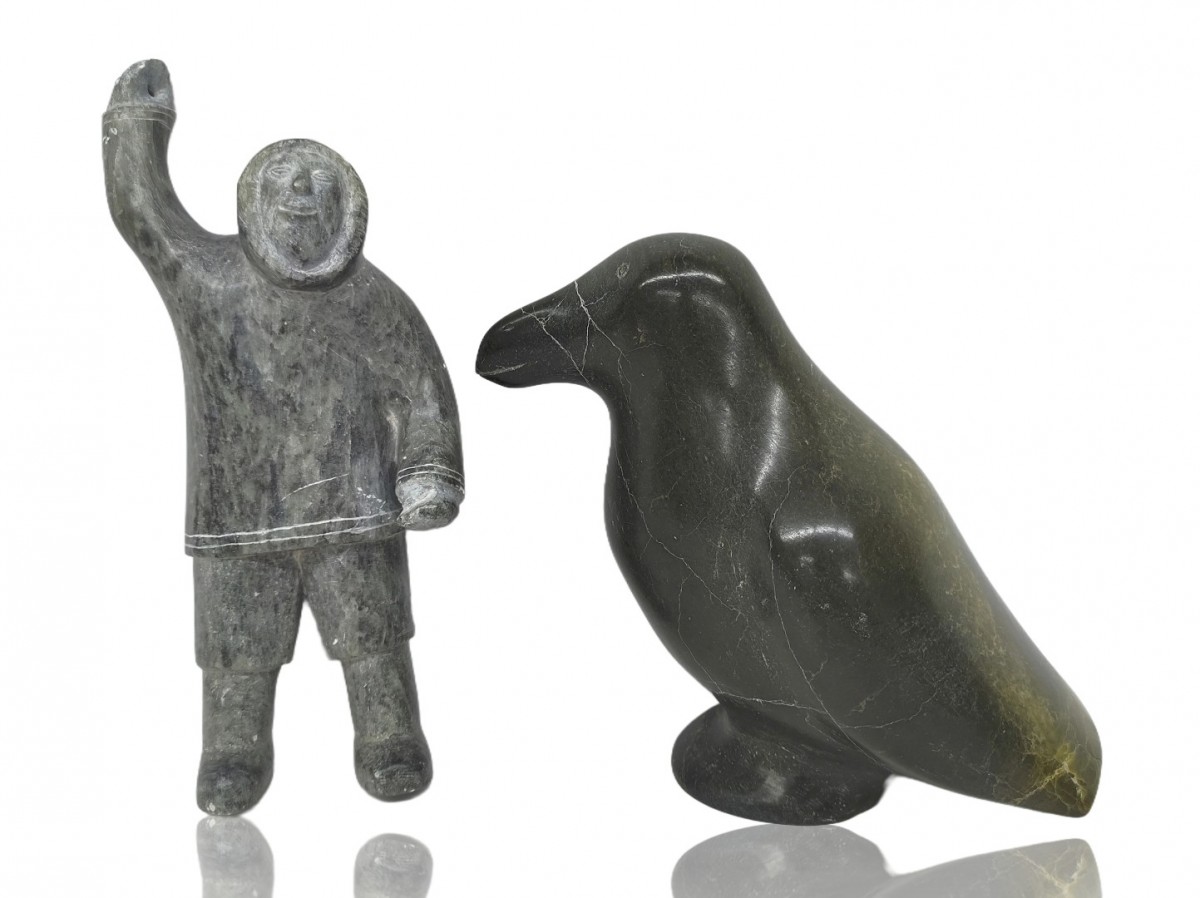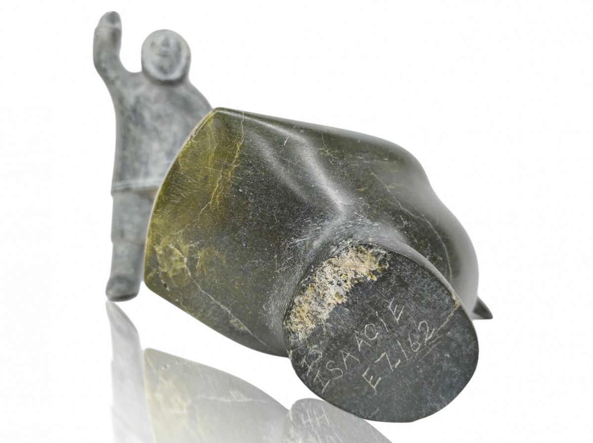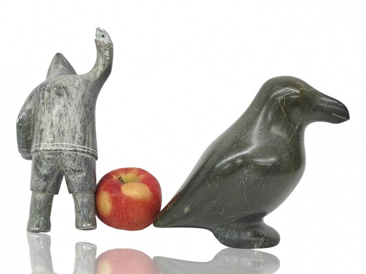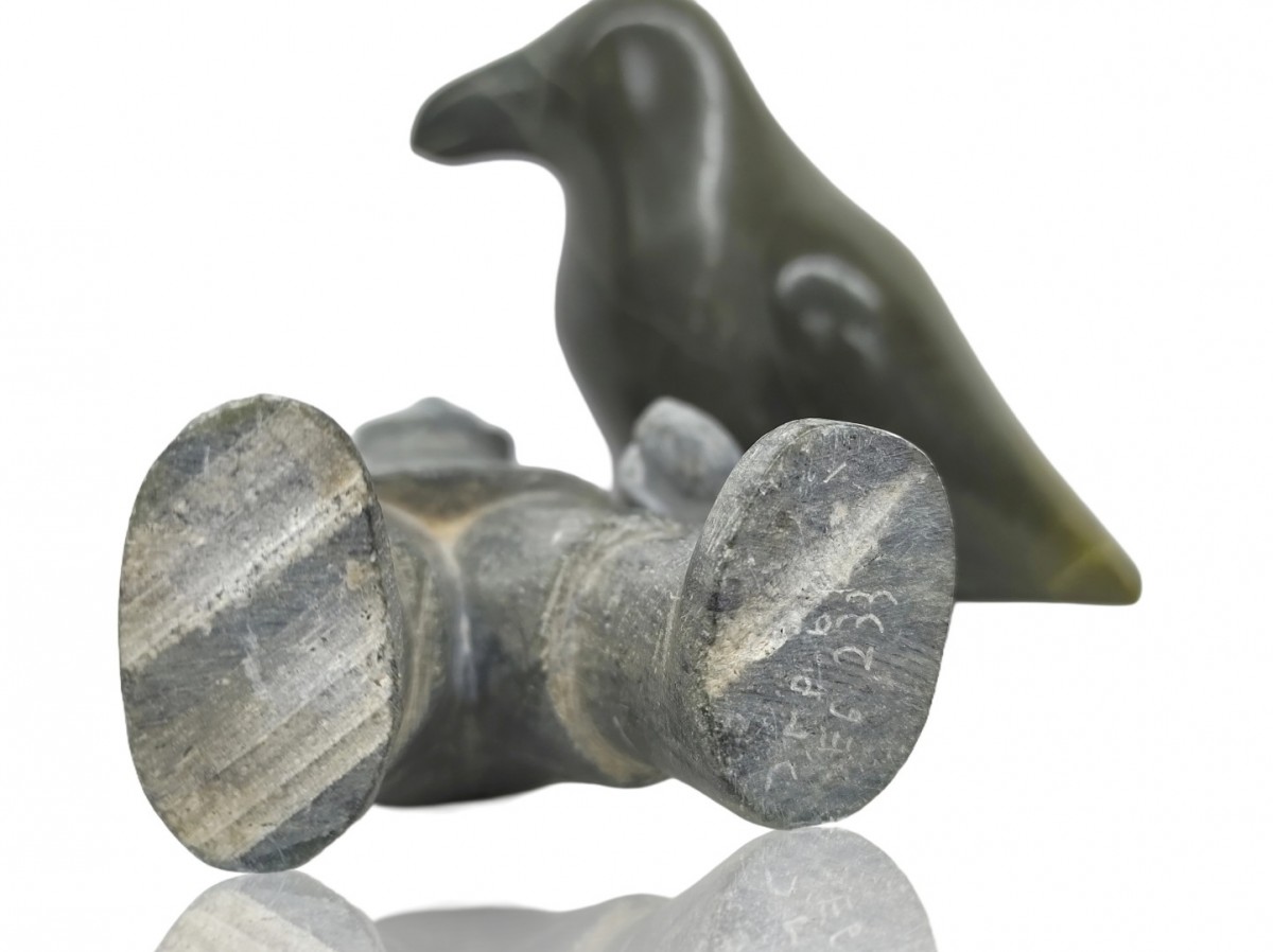 Jolie sculpture en pierre signée décorée d'oiseaux, îles de la Madelaine