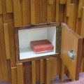 Tabernacle en laiton Art déco, porte décorée de losanges