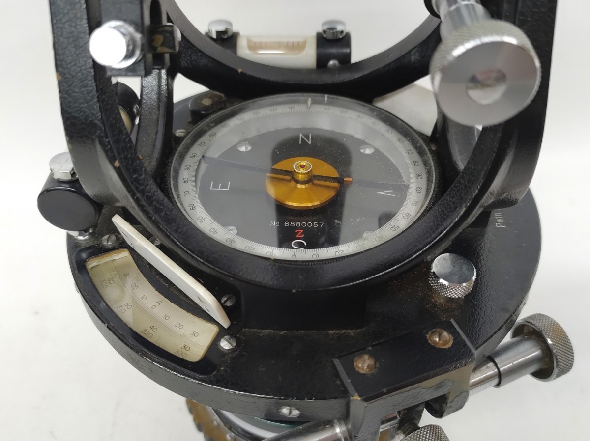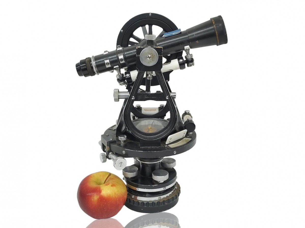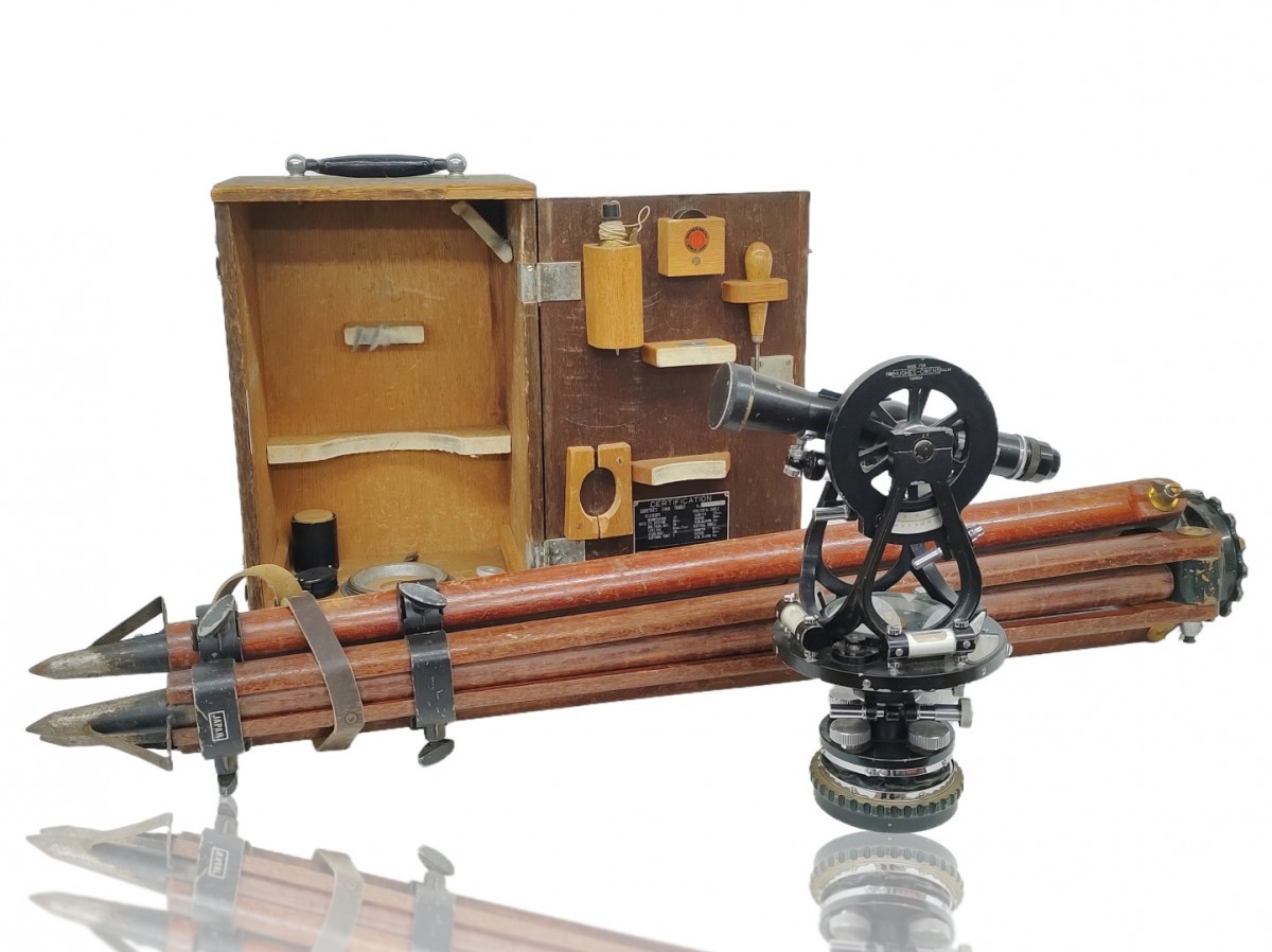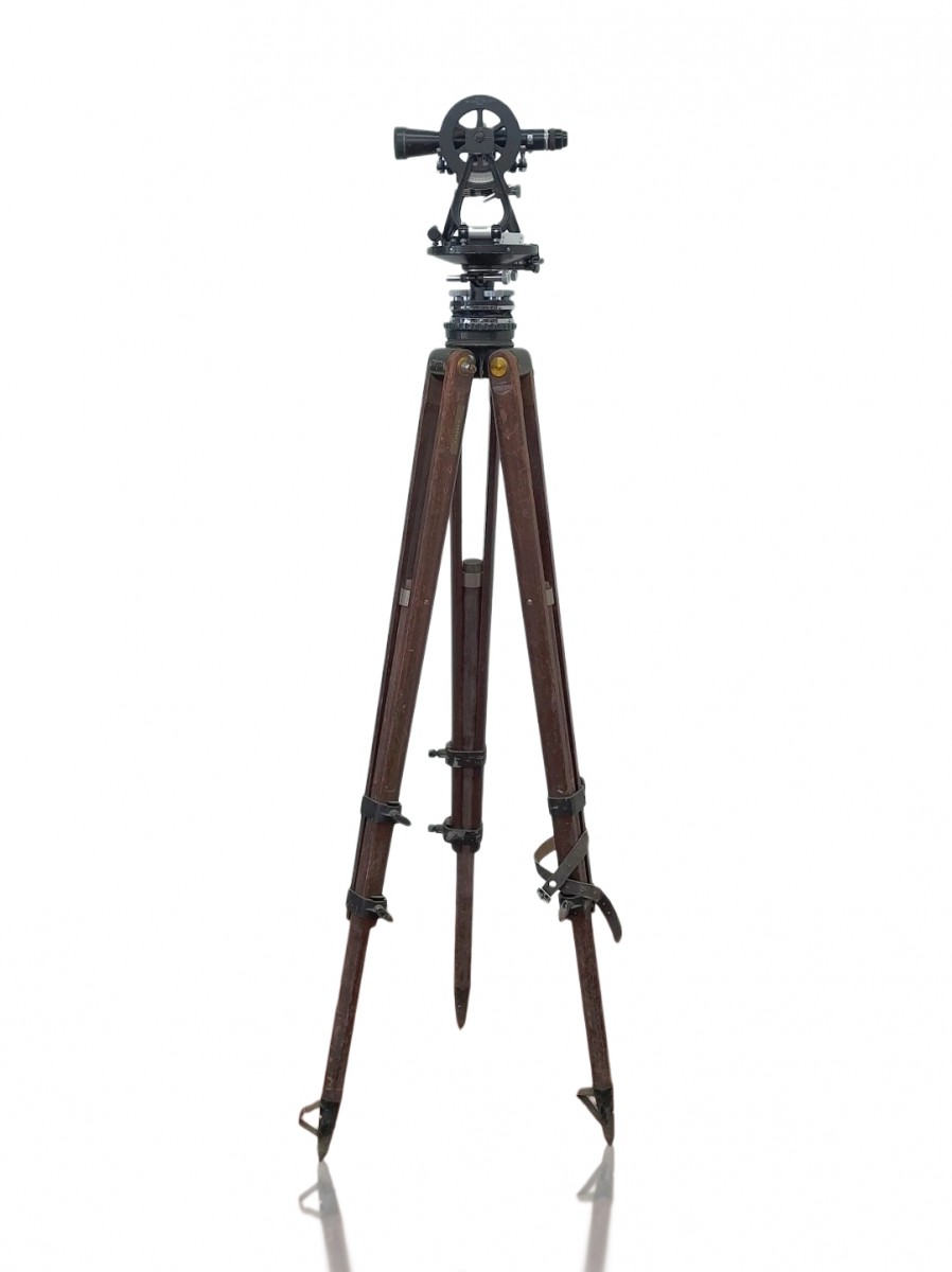 Théodolite d'arpenteur avec trépied, niveau de géomètre, lunette, transit