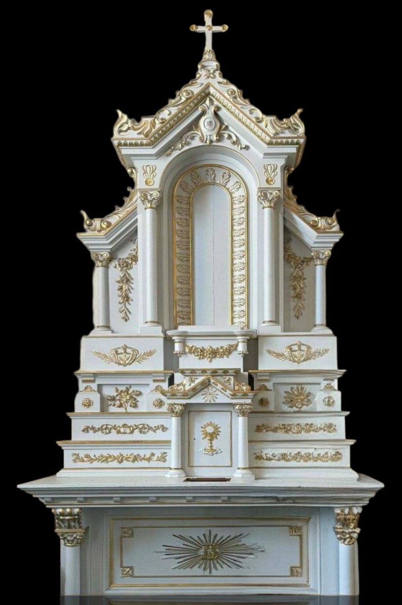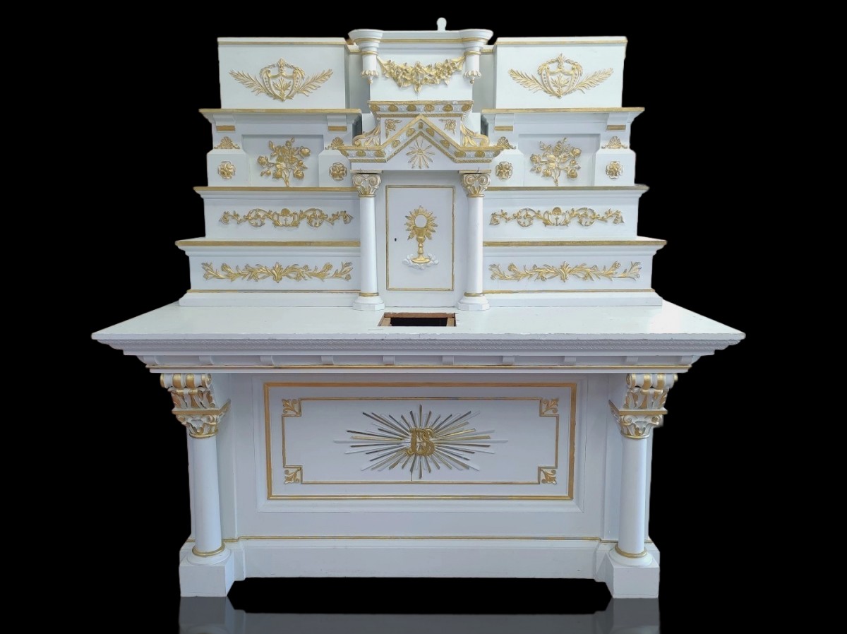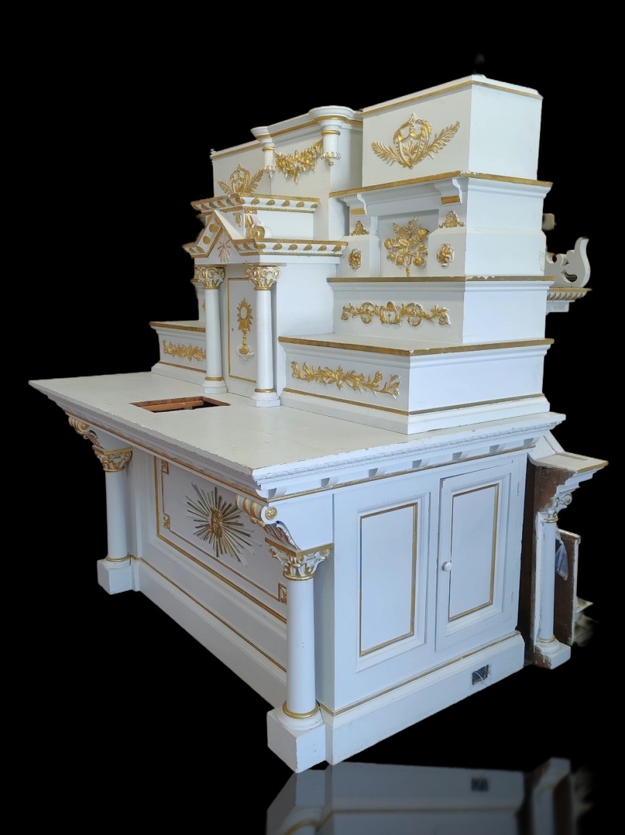 Très bel autel d'église décoré de sculptures ornementales